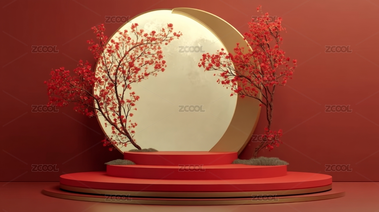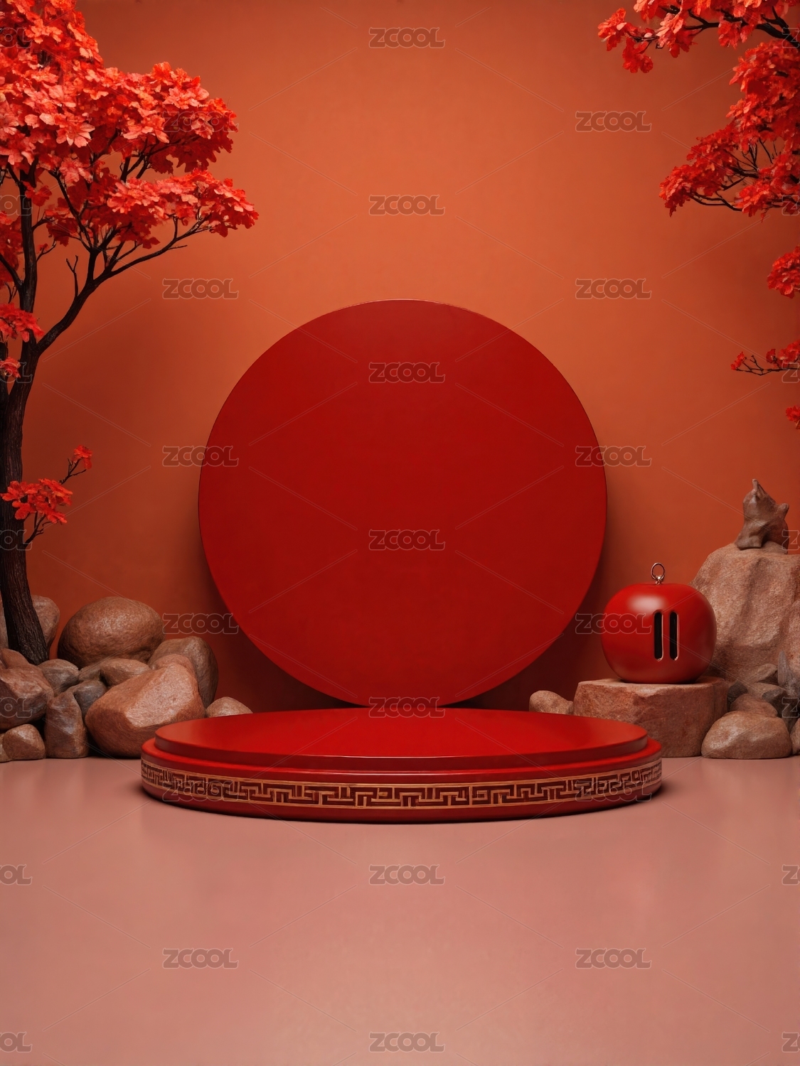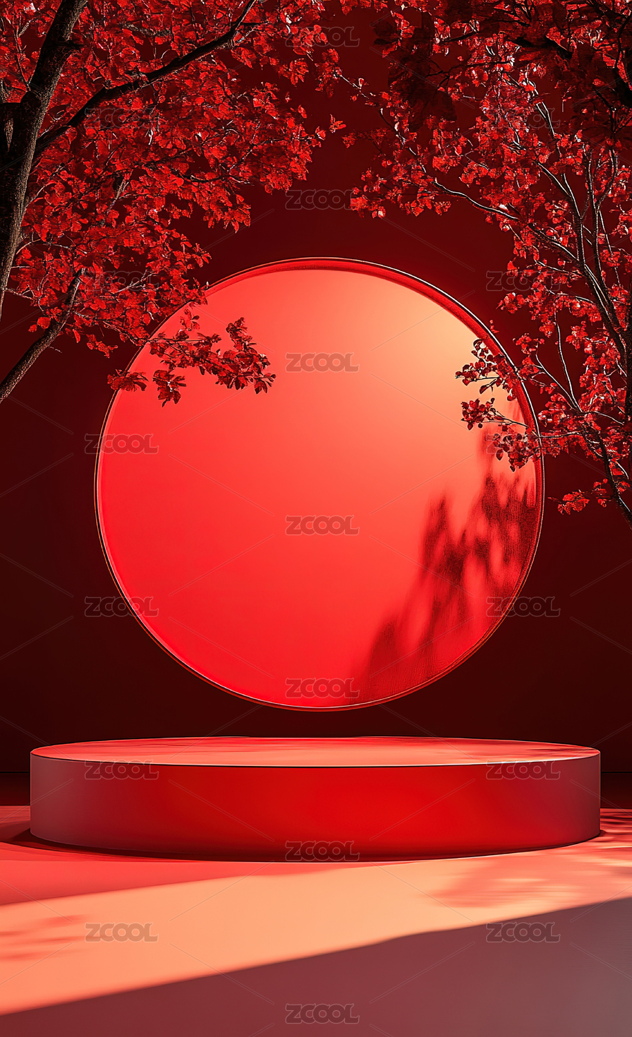 红色,圆形,背景,布置,花卉,陶瓷,盆景,装饰,舞台,设计