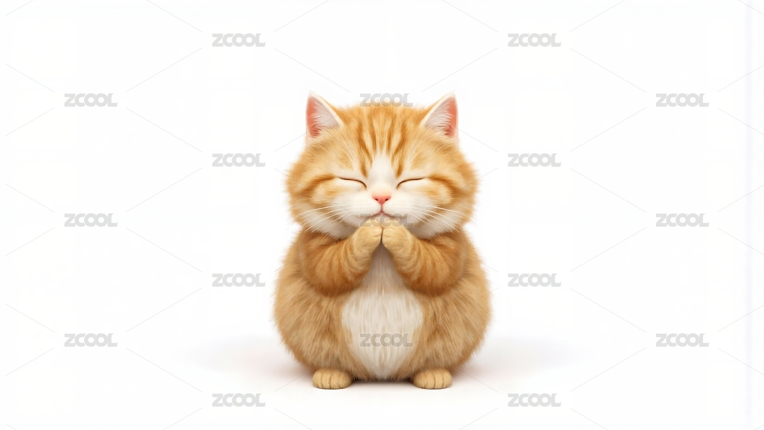 卡通,猫咪,祈祷,表情,可爱,温馨,蓝色背景,双手合十,闭眼,微笑
