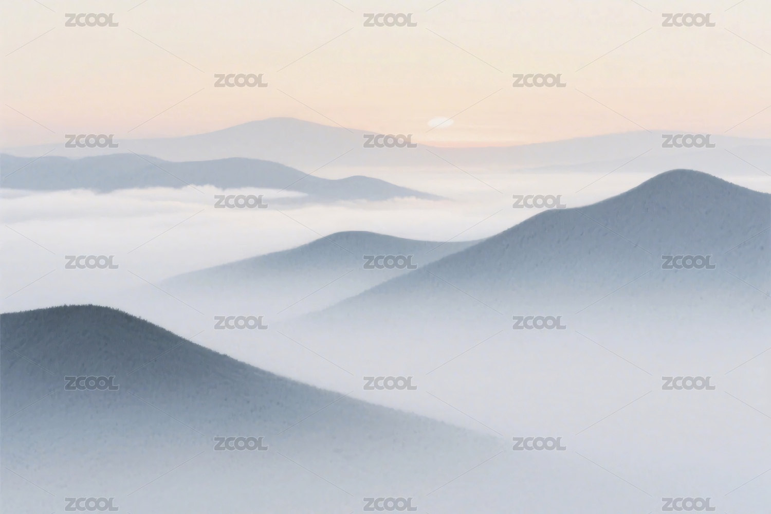 蓝色,山脉,月亮,天空,远山,层叠,风景,自然,宁静,清晨