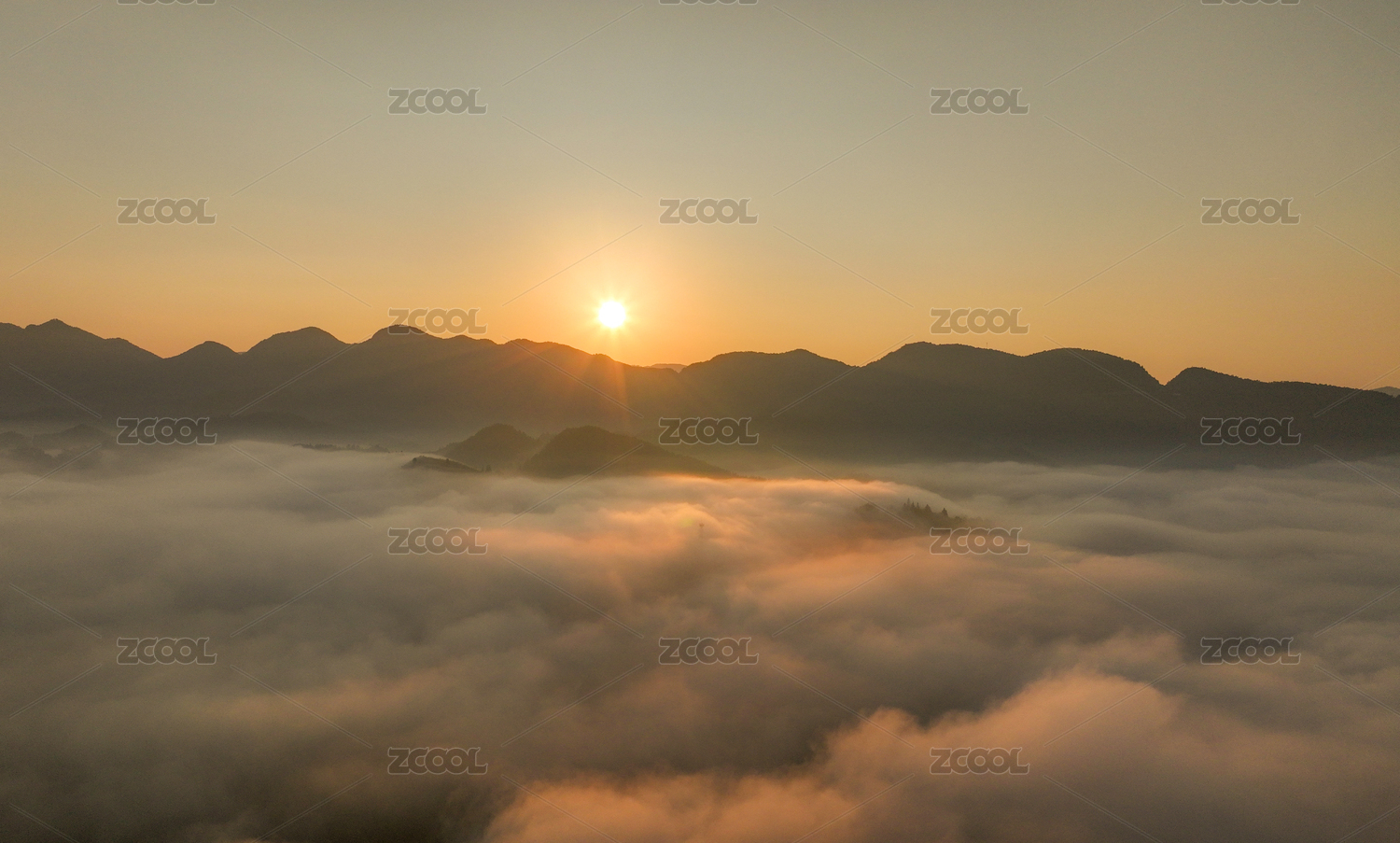亚洲,中国,重庆酉阳,平流雾,雾气,清晨,日出,夏天,村落,山道