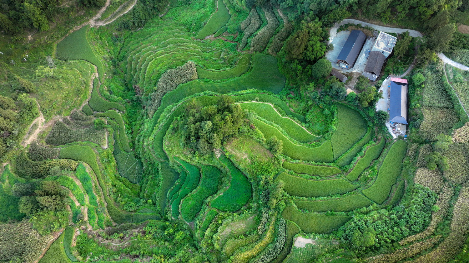 航拍安徽宣城绩溪家朋乡梅干岭梯田风光