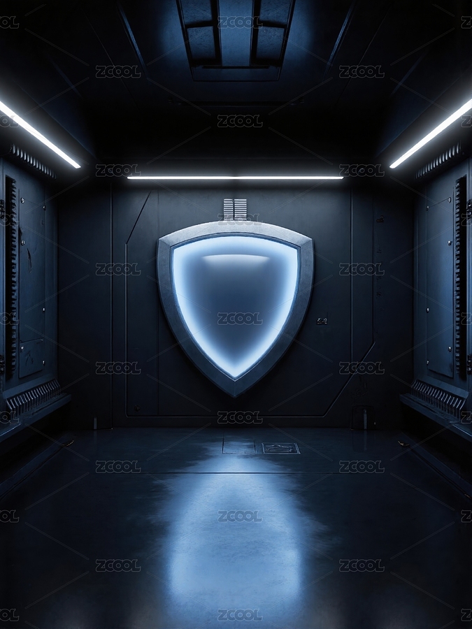 未来,科技,密室,盾牌,蓝色,光线,墙壁,地板,金属,封闭