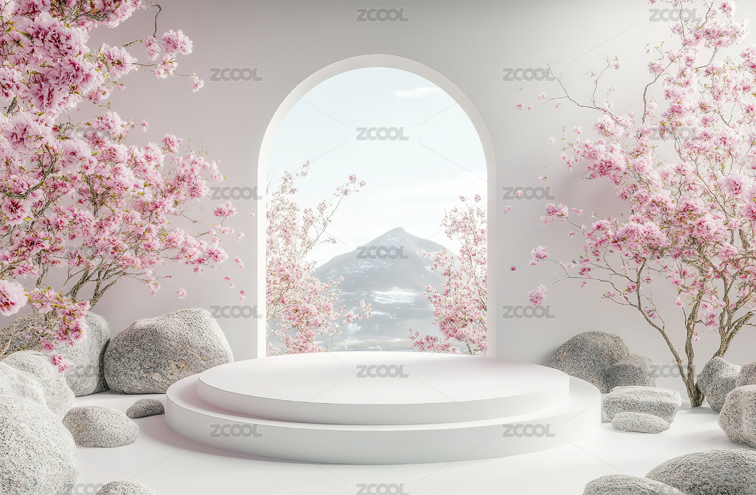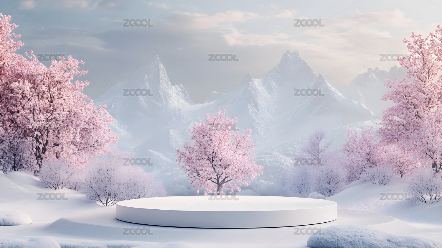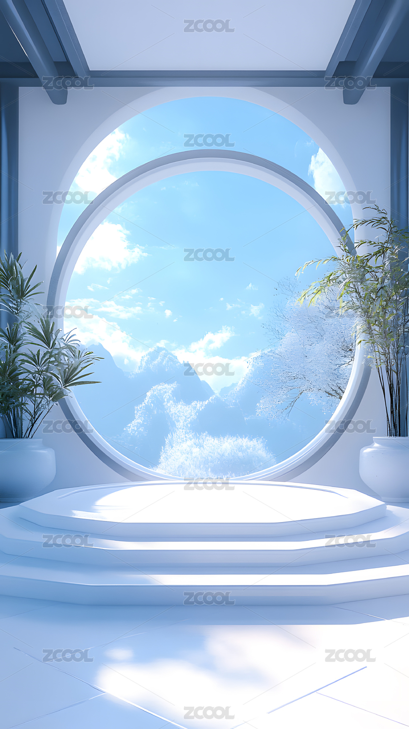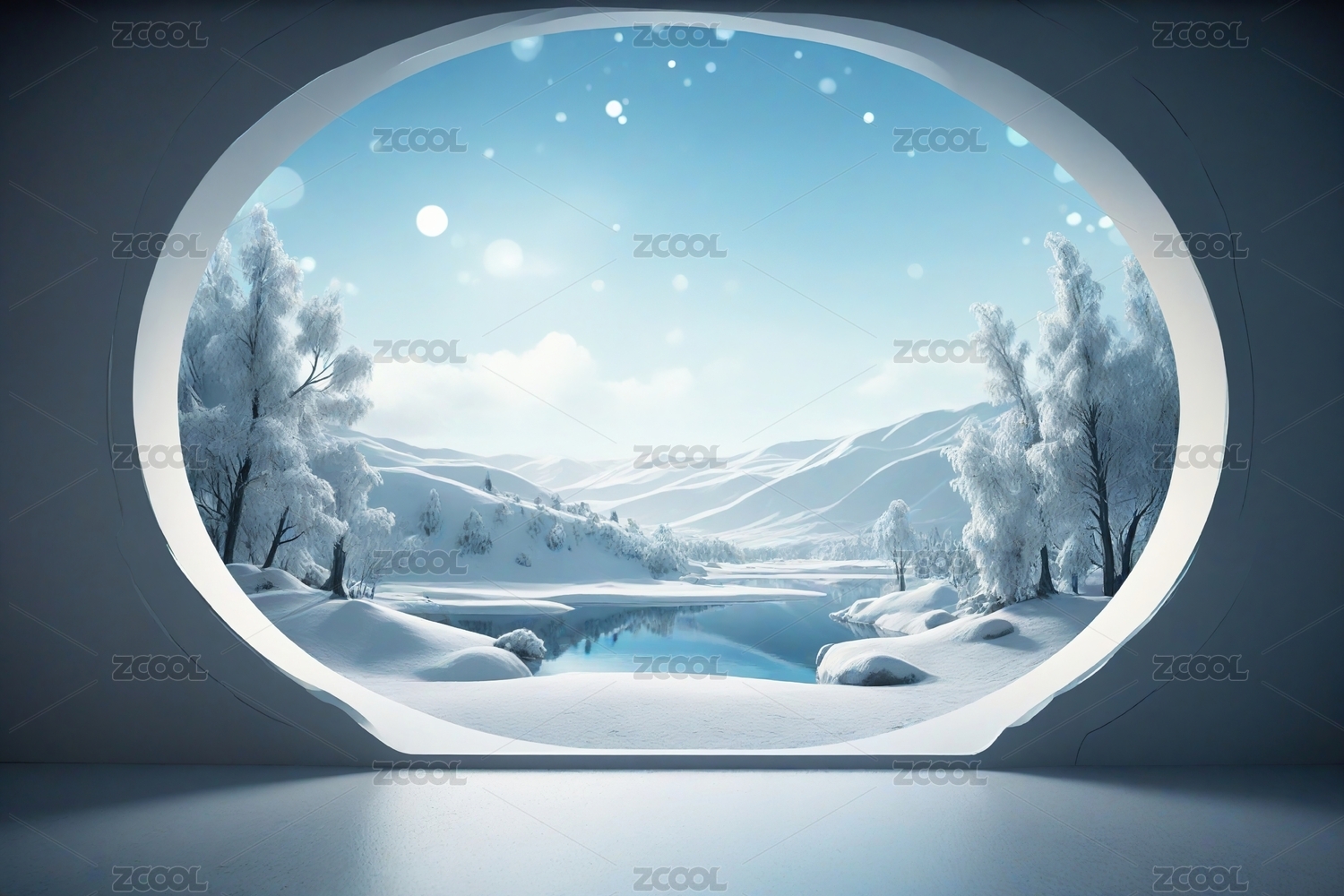 雪山,冬日,树枝,圆形窗户,室内,白色,平台,风景,冷色调,宁静