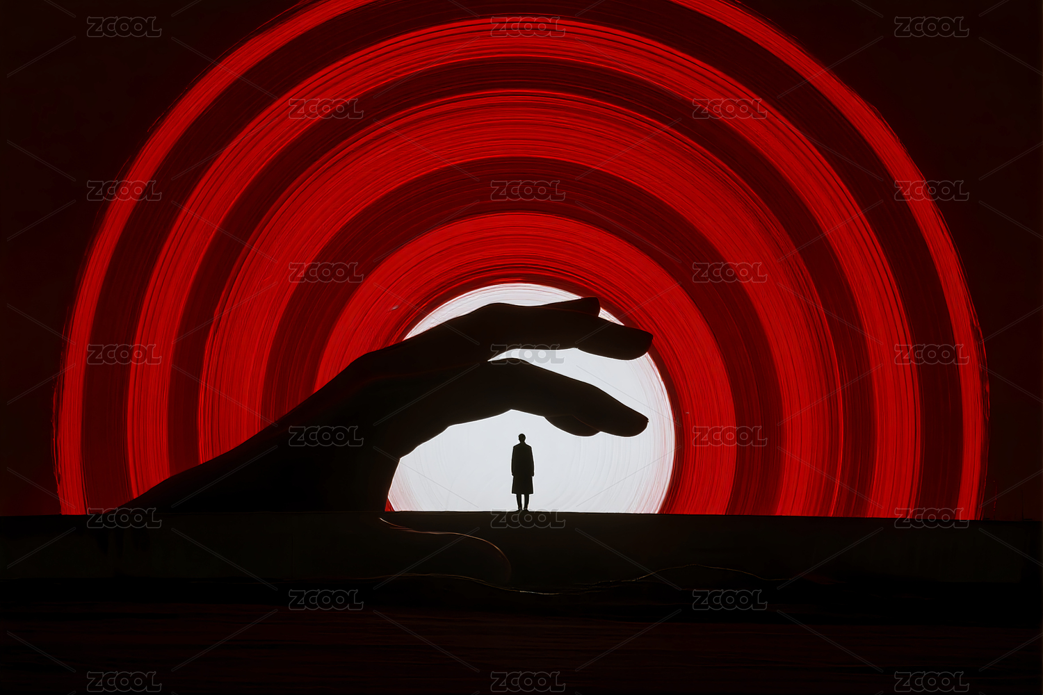 红色背景中的人物剪影