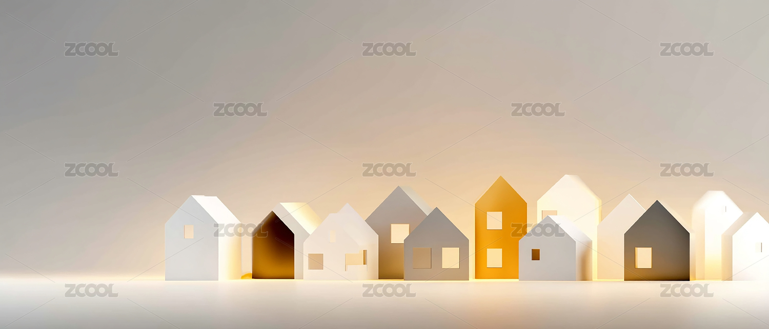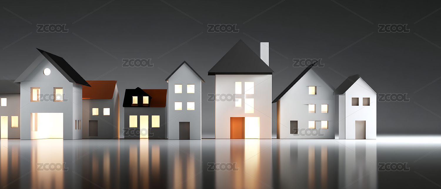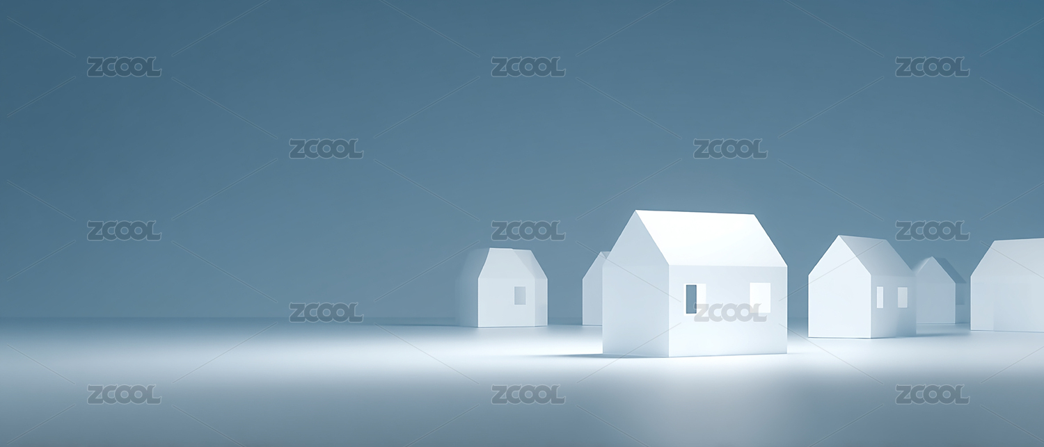 白色简约小屋模型环绕的红色小屋模型 三维渲染