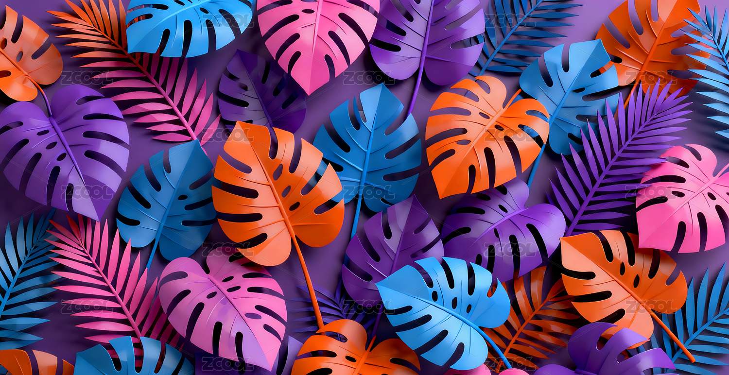 彩色热带植物叶子背景
