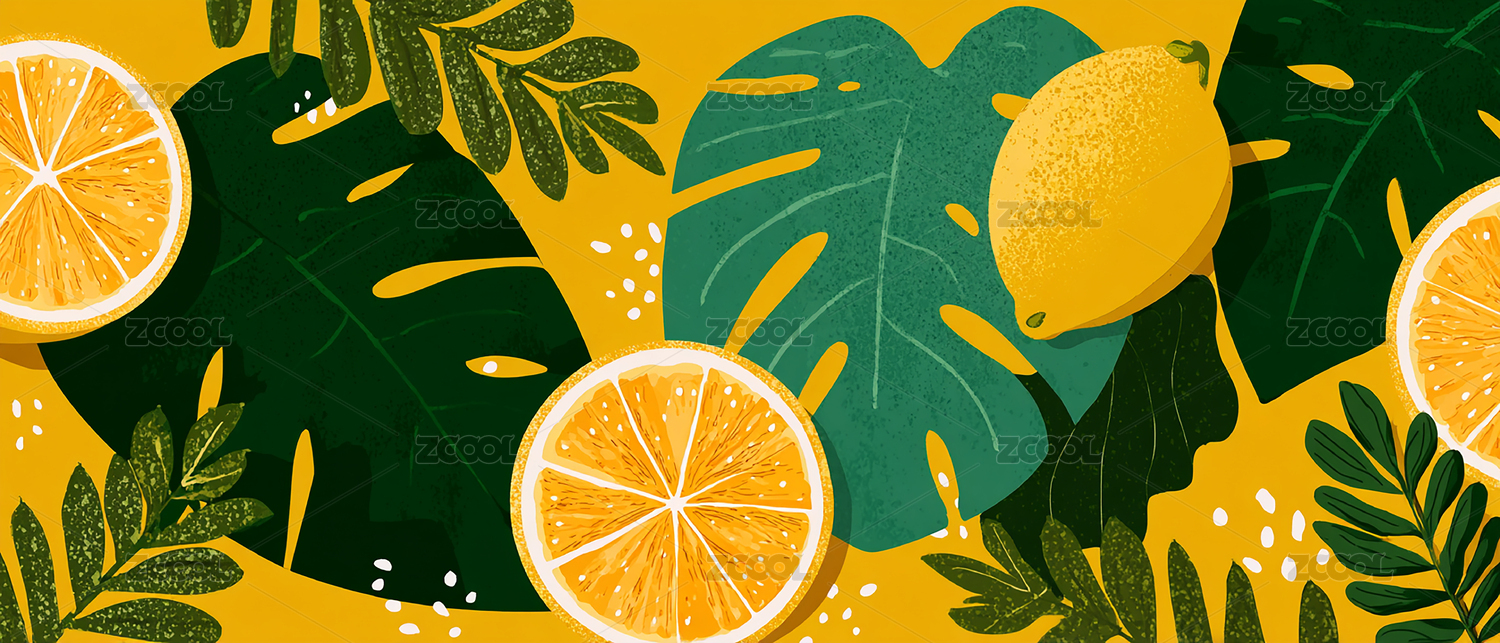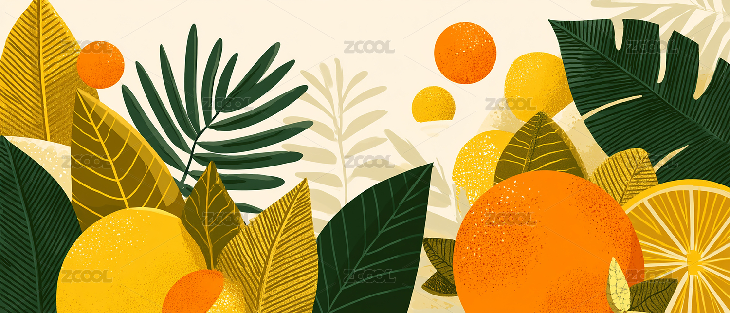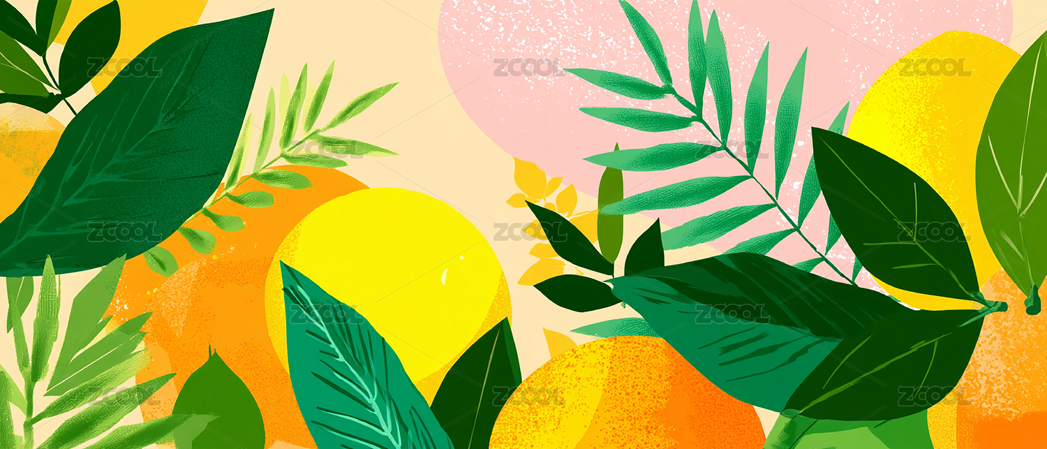 清新,植物,插画,夏季,背景,绿叶,花卉,阳光,生机,自然