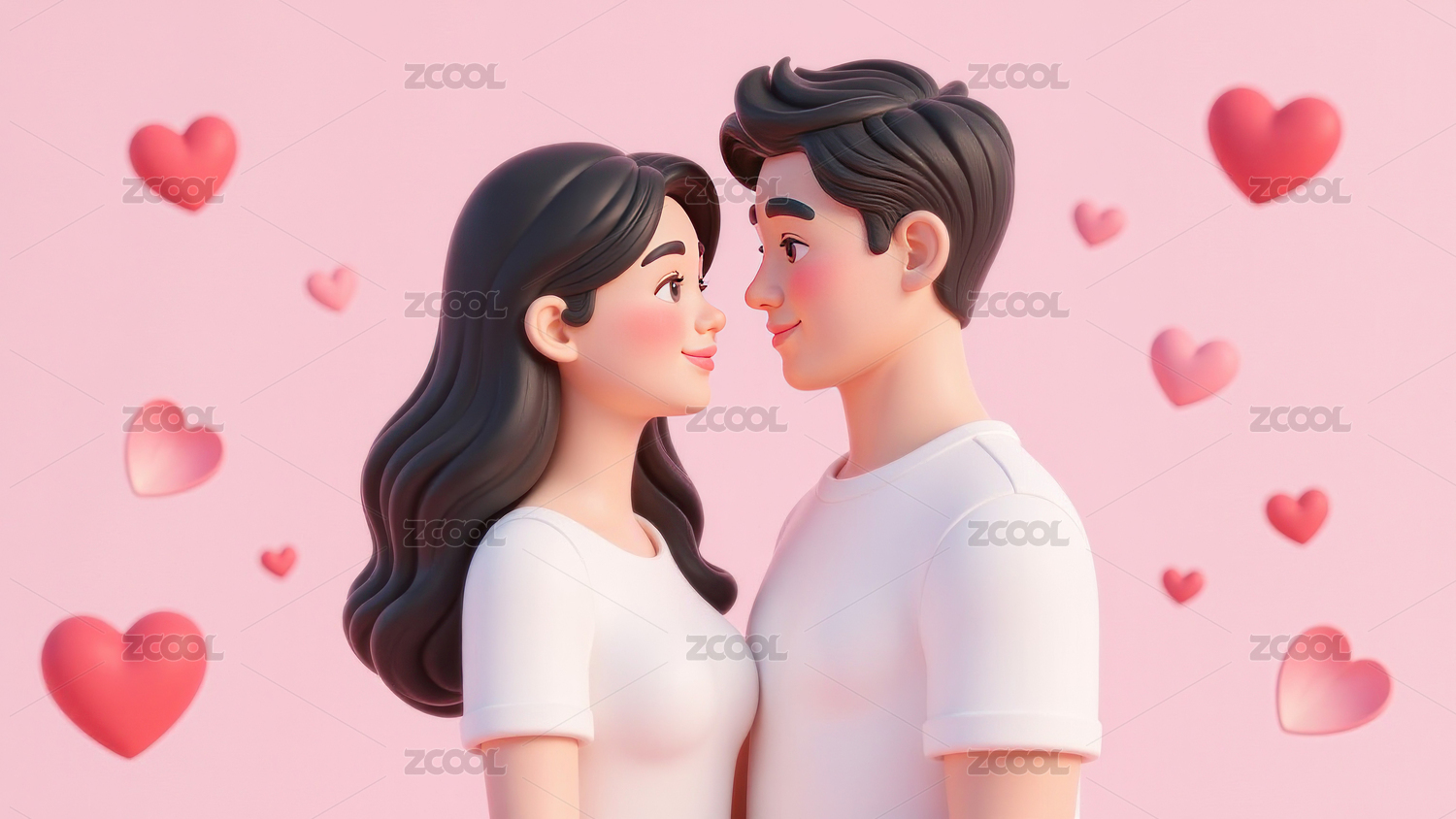 恋人,情侣,年轻,拥抱,粉色,爱心,背景,插画,3D,渲染