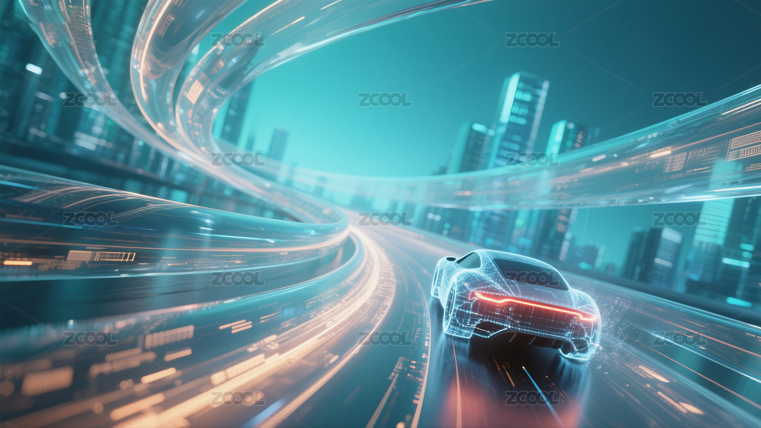 未来城市中自动驾驶汽车高速行驶的科技场景