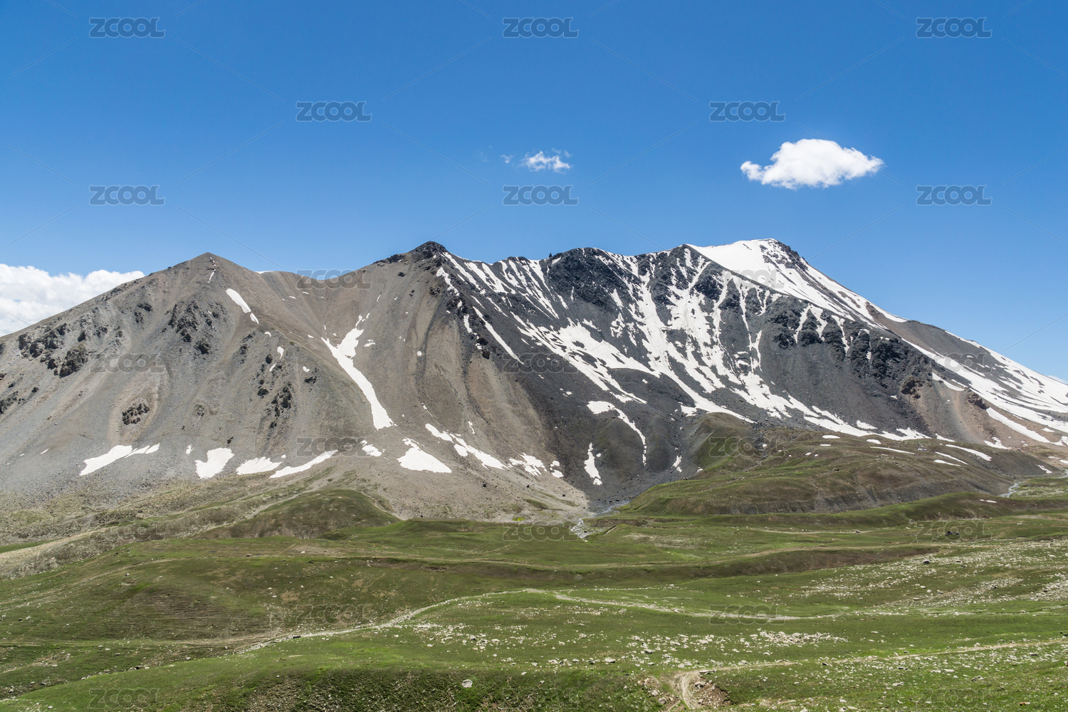 中国新疆夏季蓝天白云下G217独库公路沿途高山草原