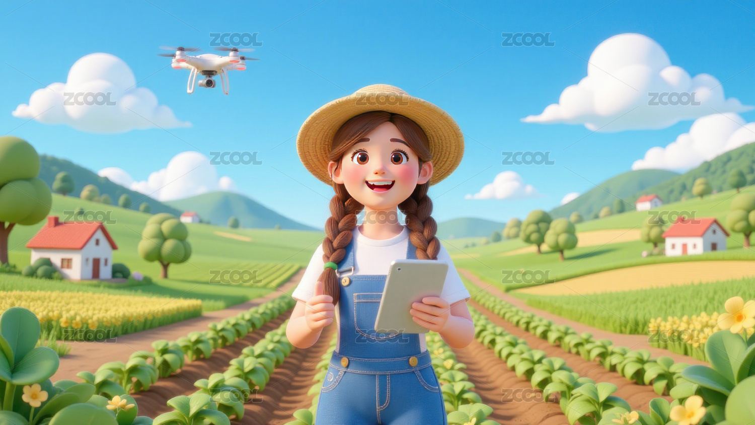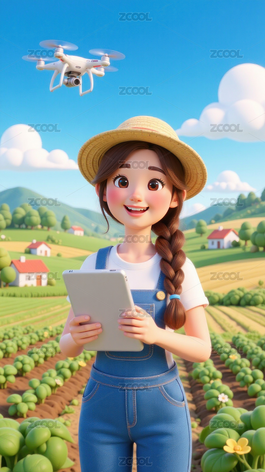 年轻,女,农民,无人机,平板电脑,蔬菜田,农业,科技,智能农业,现代农业