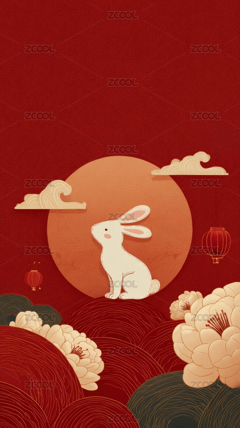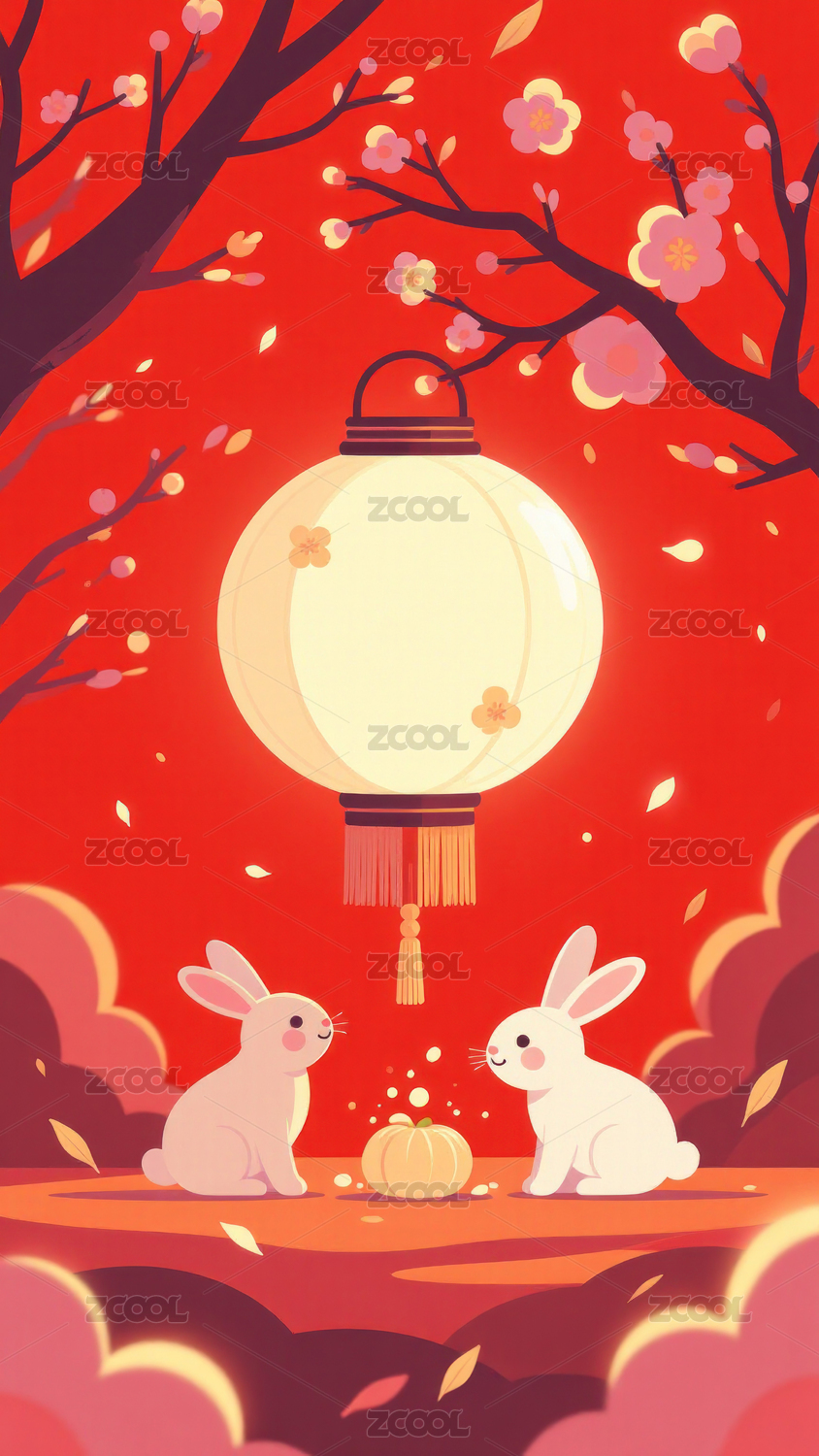 兔子,灯笼,春节,新年,节日,喜庆,可爱,动物,插画,红色背景