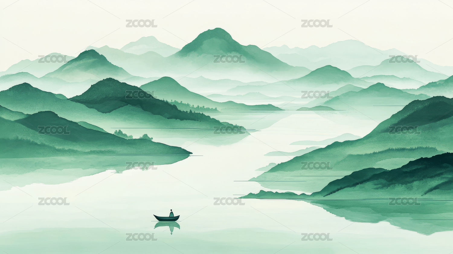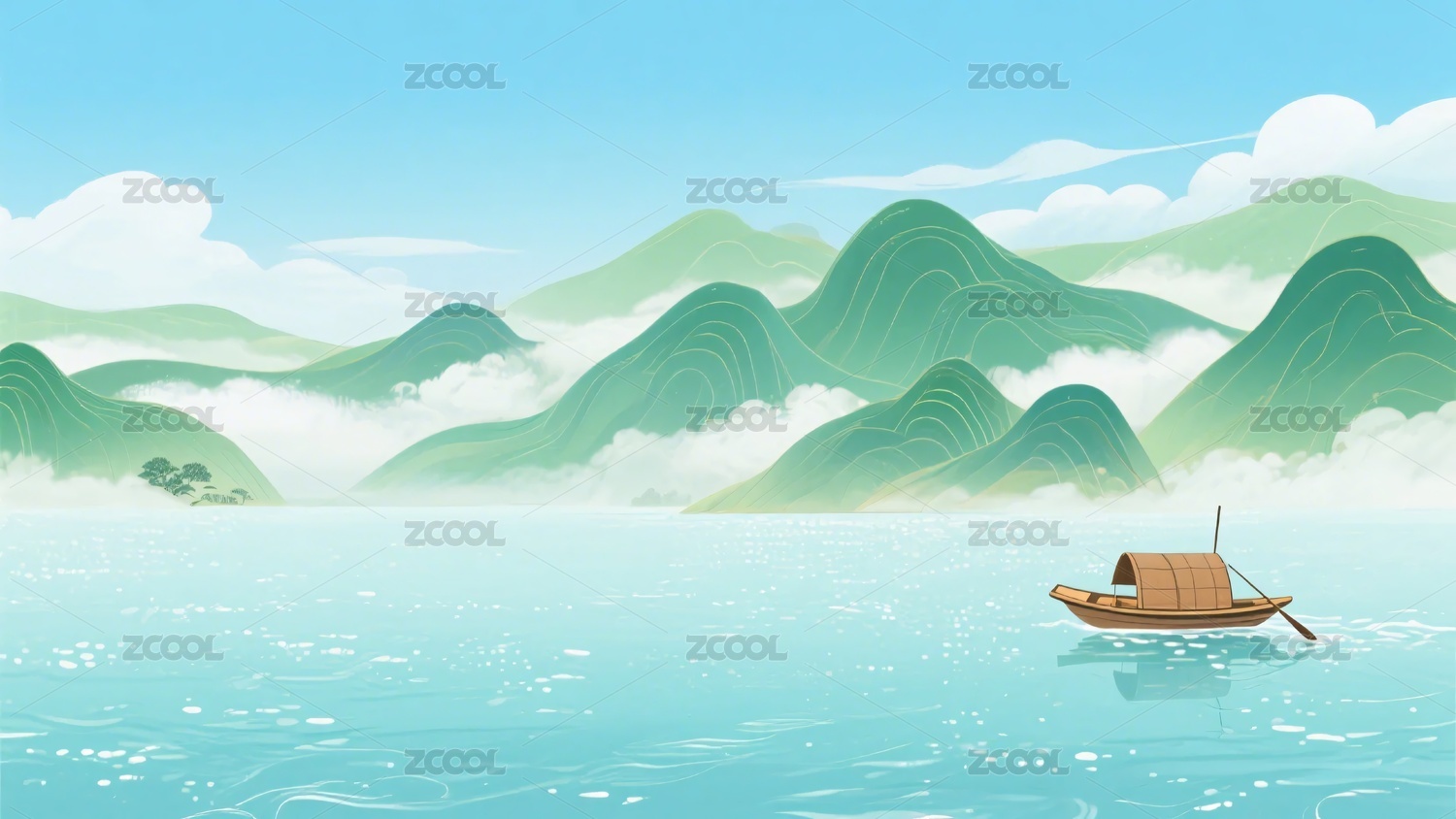 湖面山水小舟背景
