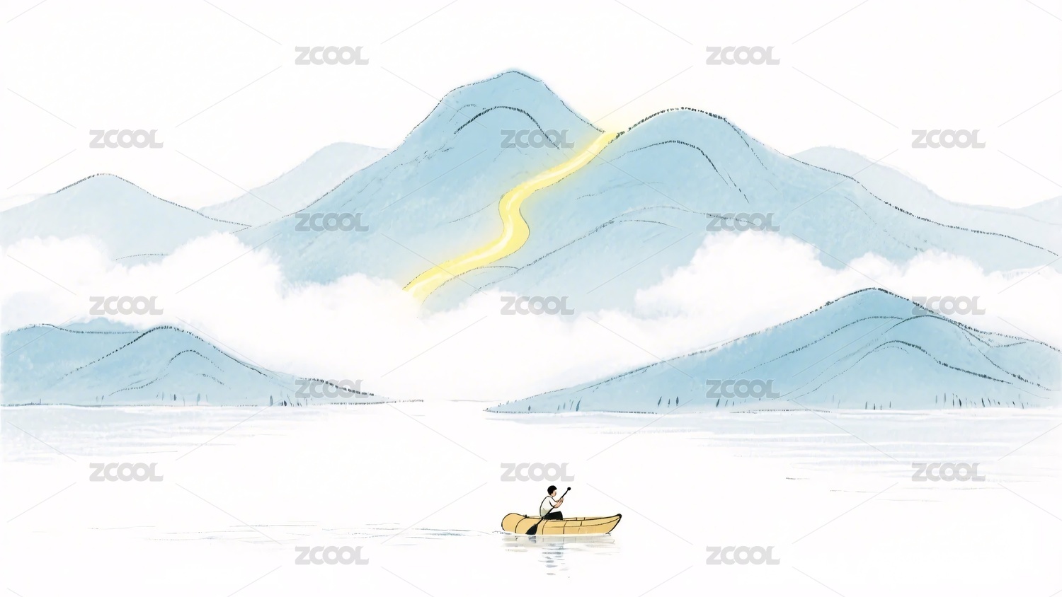 山水间的孤舟插画