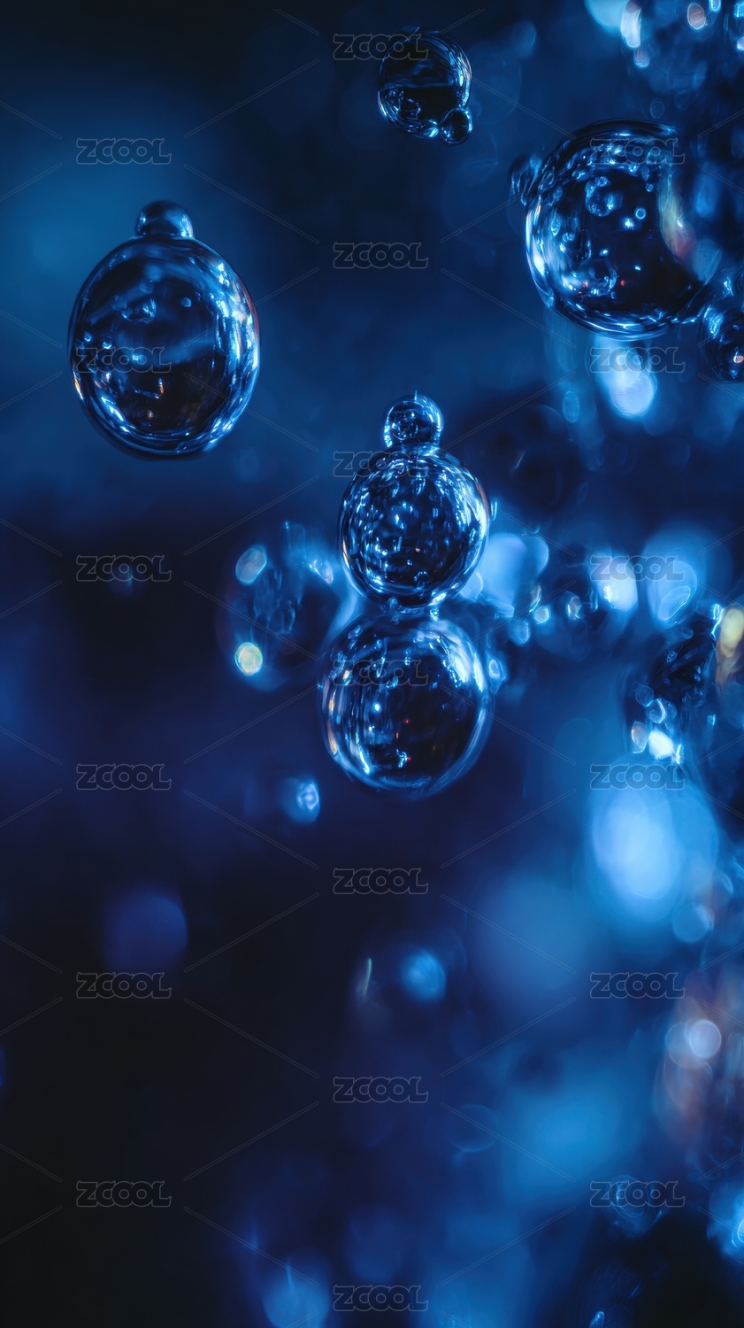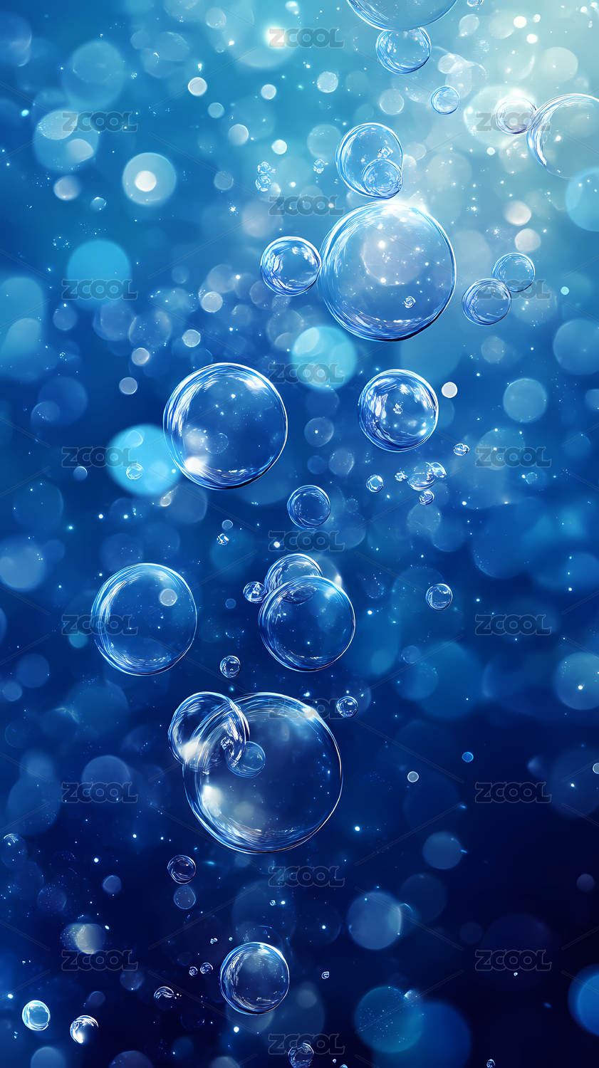 蓝色气泡在水中跃动