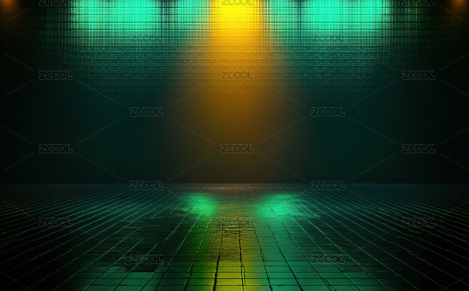 未来科技感的绿色网格房间