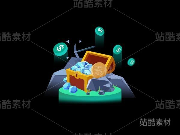 宝箱挖矿插画