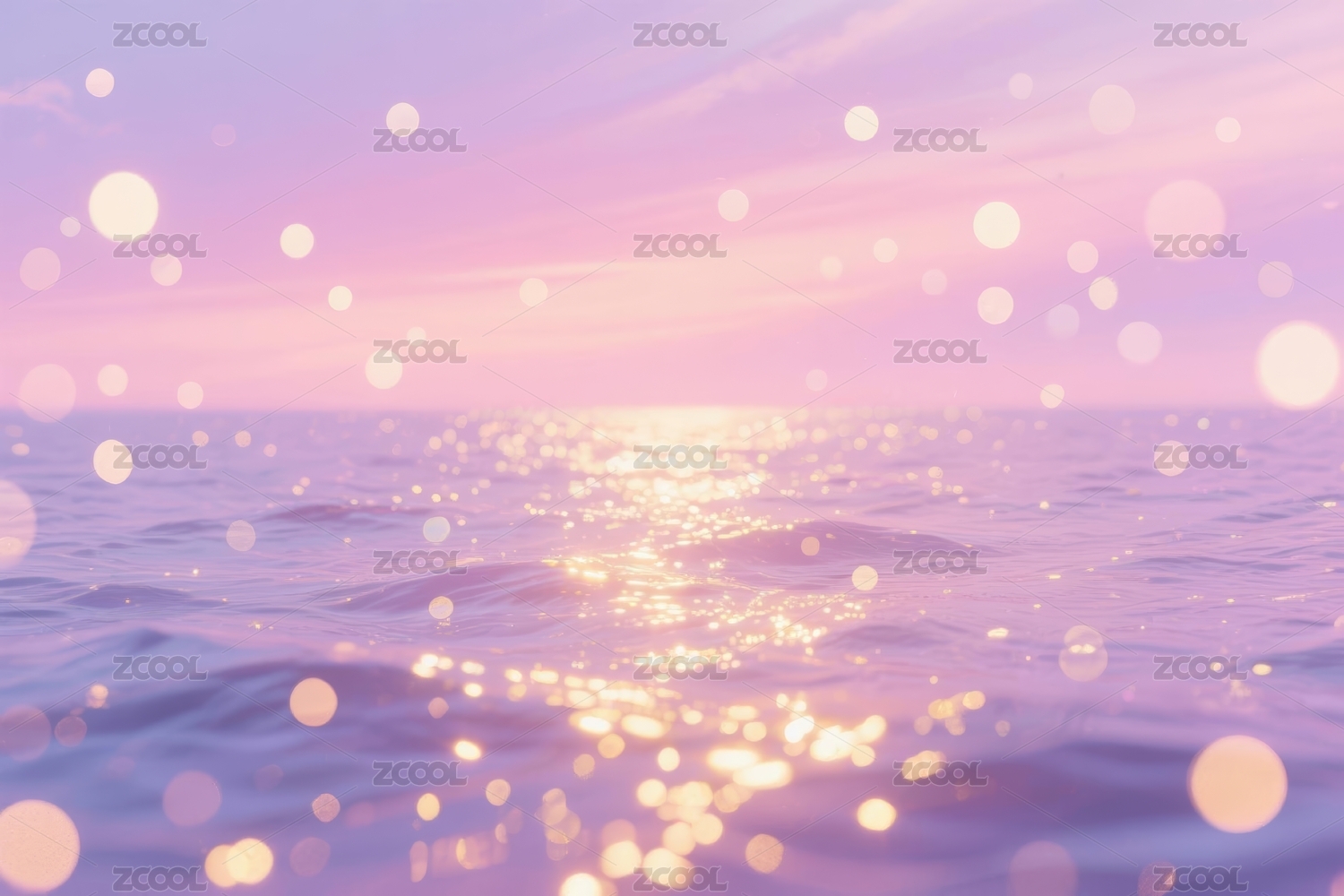 主视觉,商业,场景,海面,粉紫,日落,波光,光斑,梦幻,浪漫
