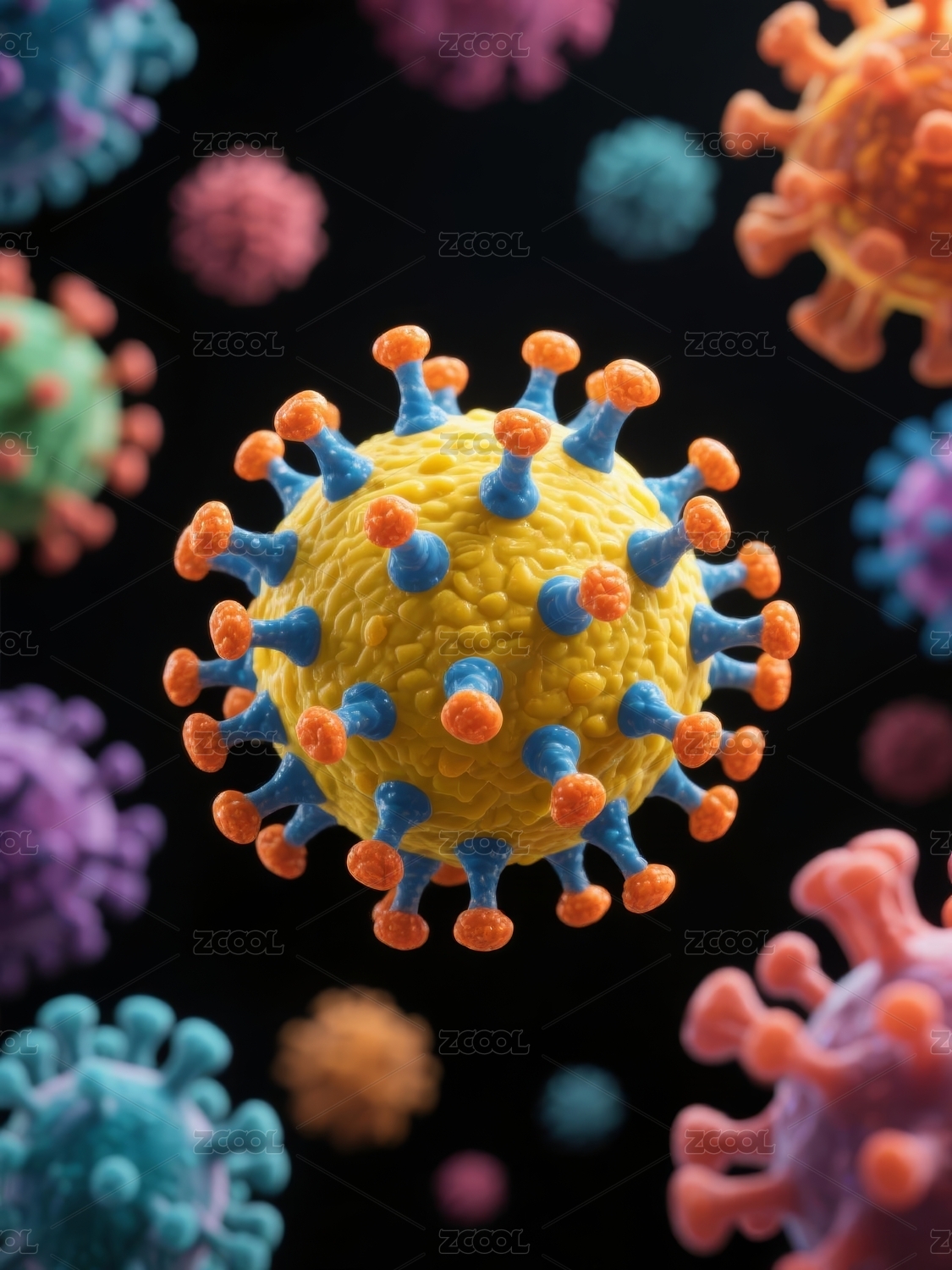 病毒多色系微观展示场景