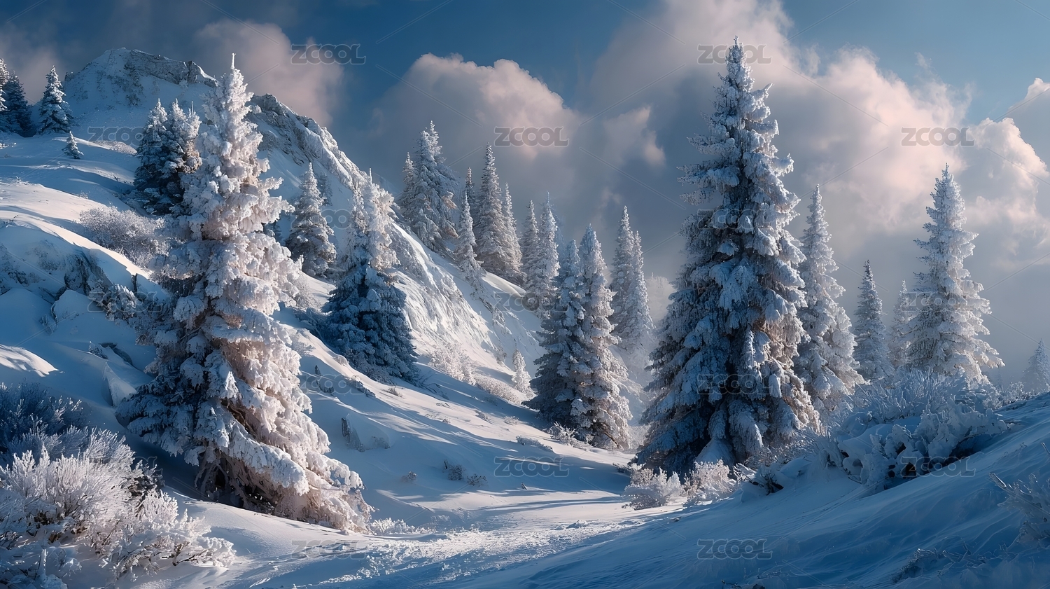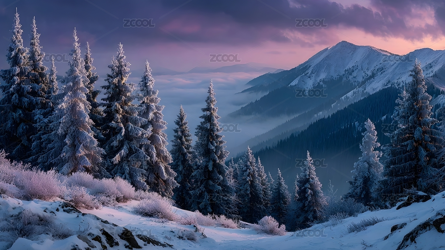 雪景,松树,雪覆盖,树木,森林,自然,风景,静谧,雪山,山脉