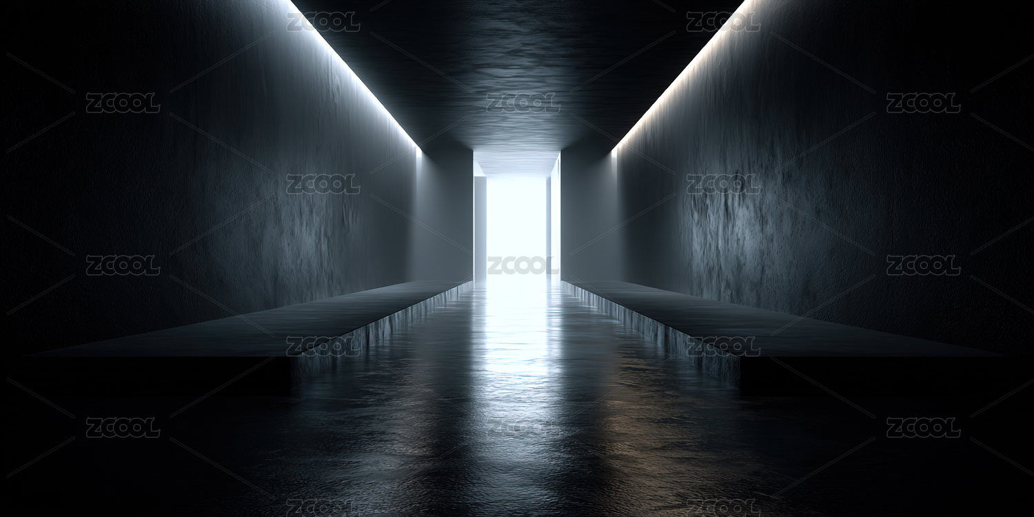 未来感走廊灯光反射
