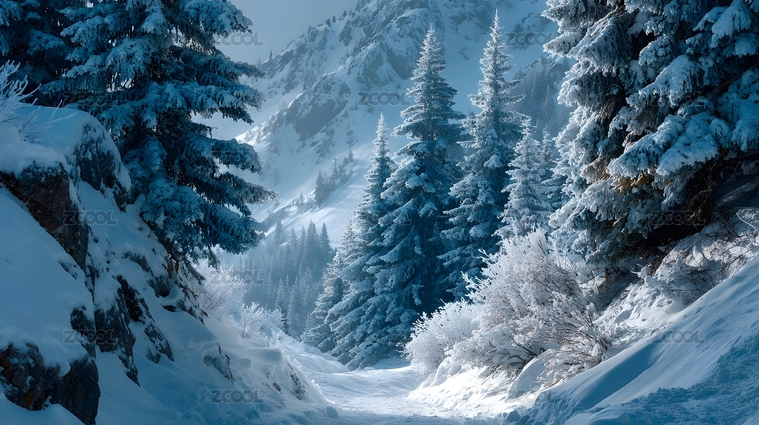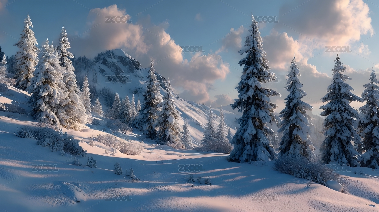 松树,雪地,远山,山脉,雪景,森林,自然,风景,寒冷,宁静