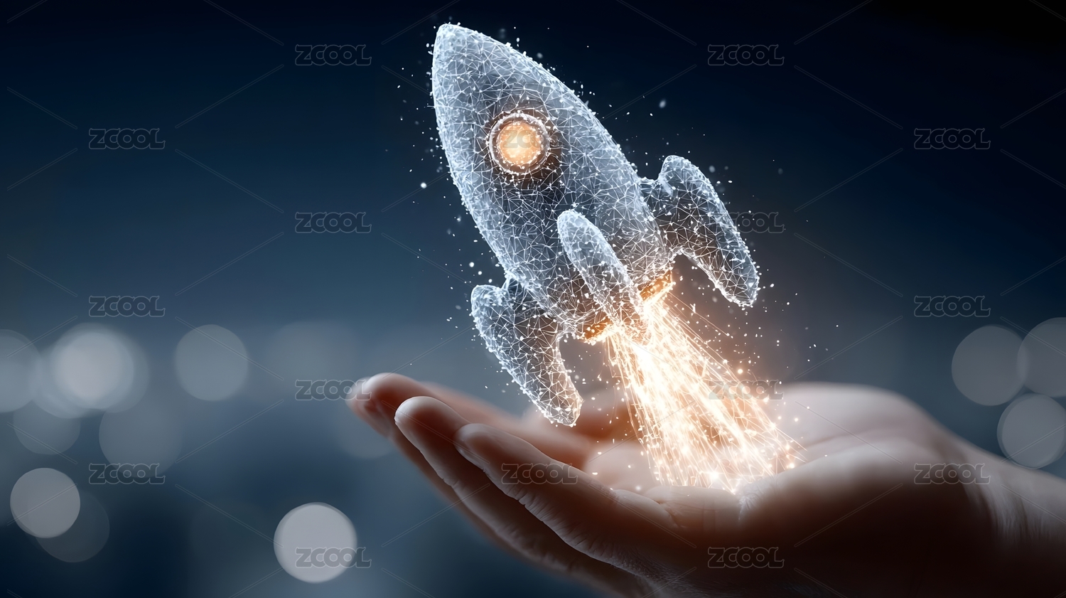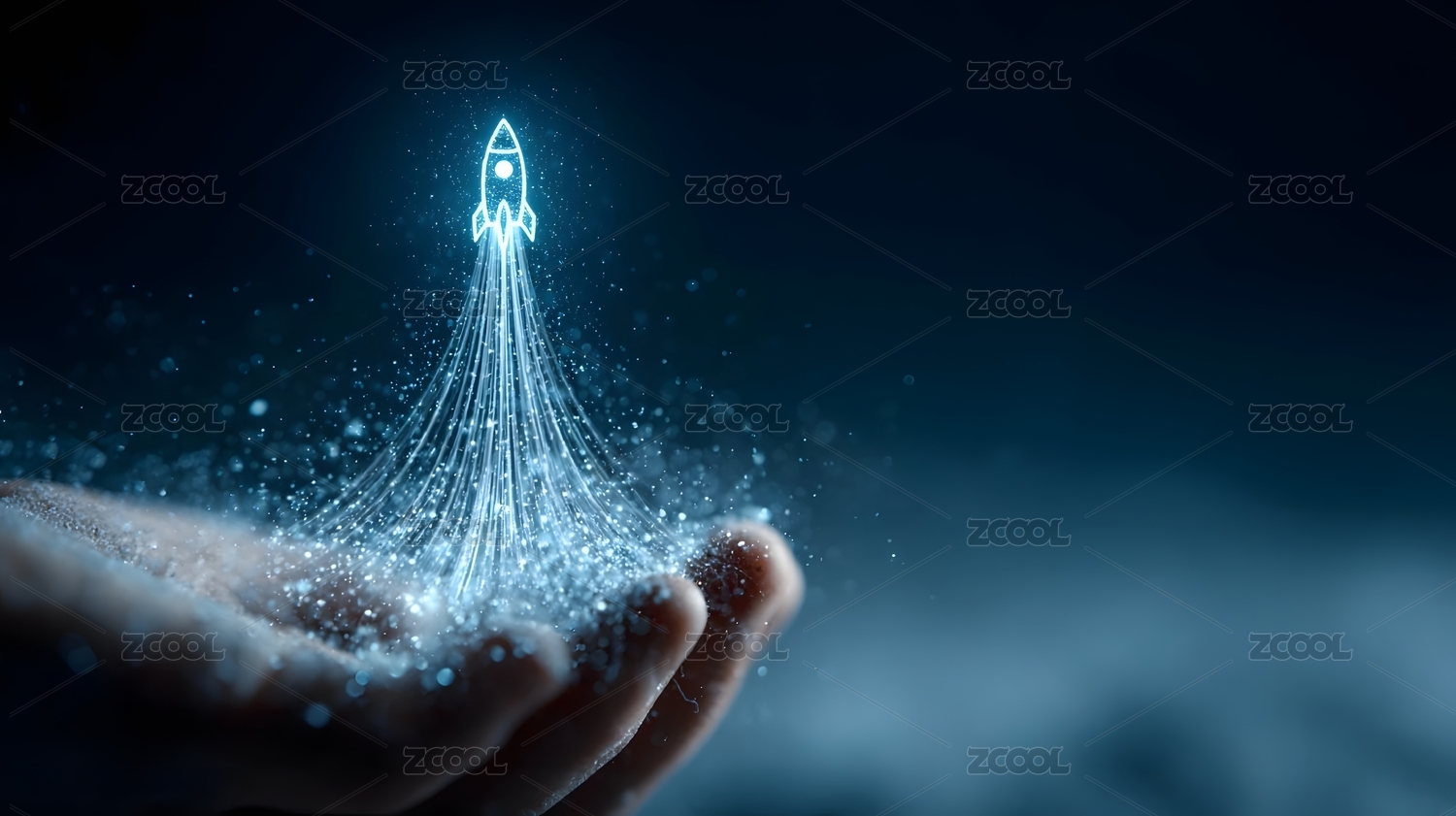 手掌托起发光火箭