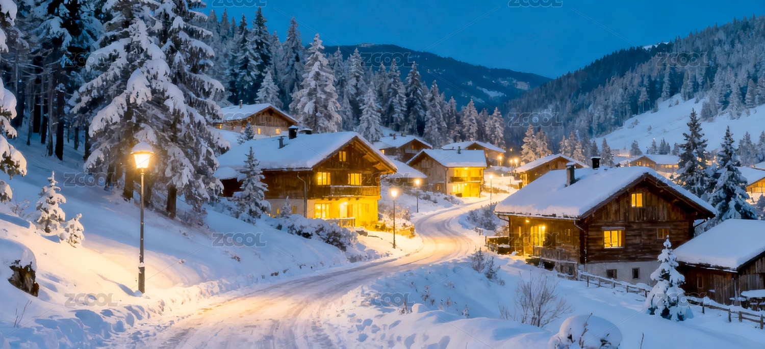 雪乡木屋暖光冬日场景