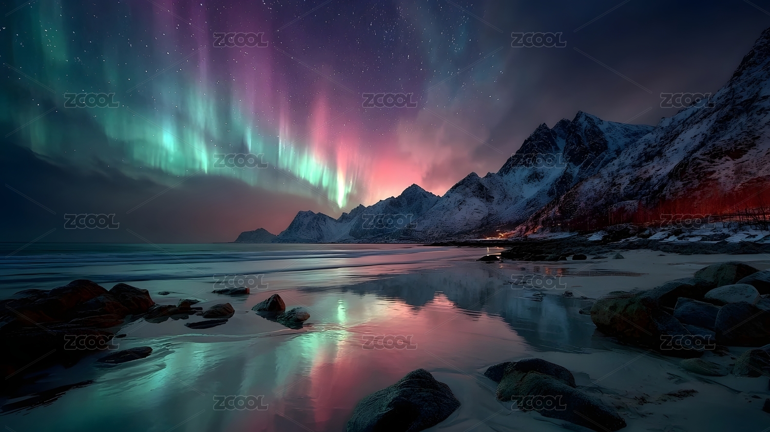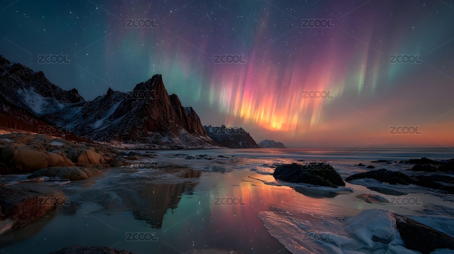 极光,山脉,星空,夜晚,天空,自然,风景,山峰,湖泊,岩石