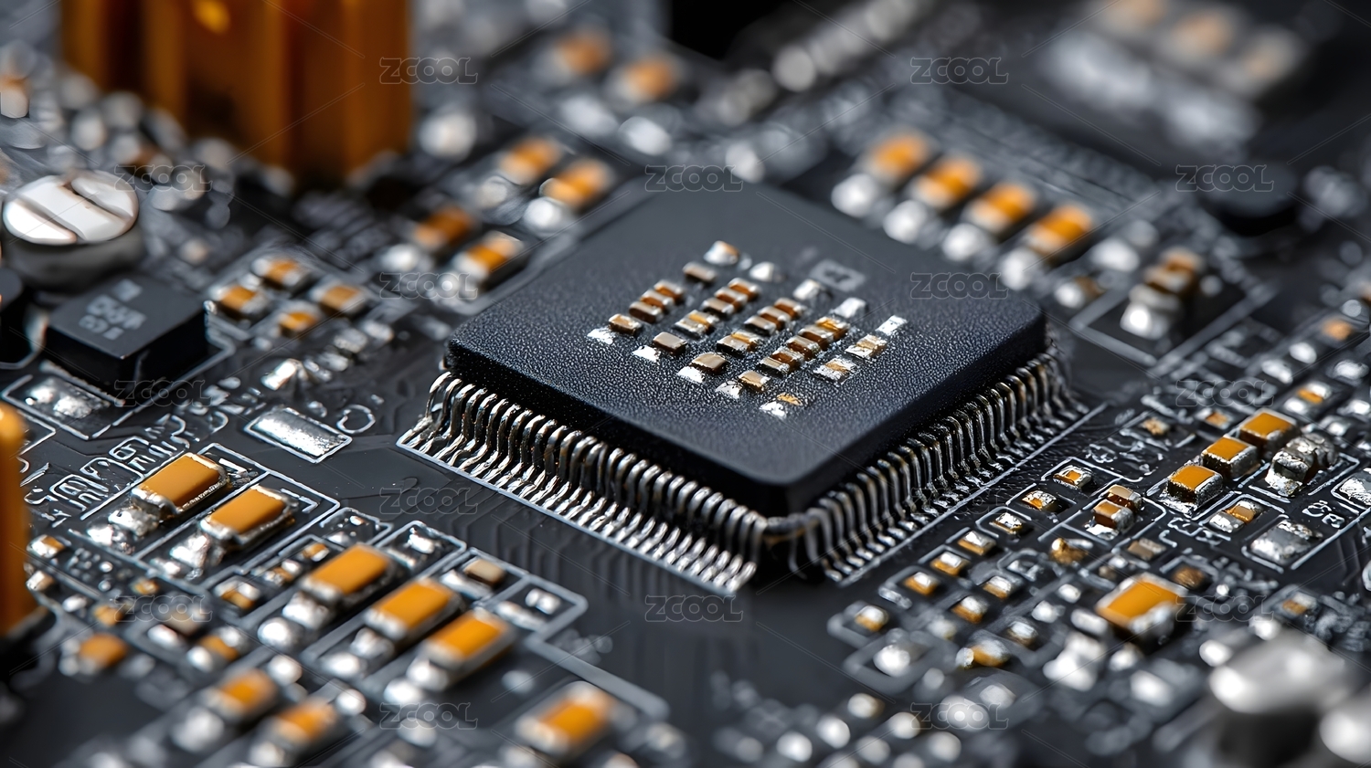 黑色,芯片,电路板,元件,线路,金属,科技感,芯片组,电容,电阻