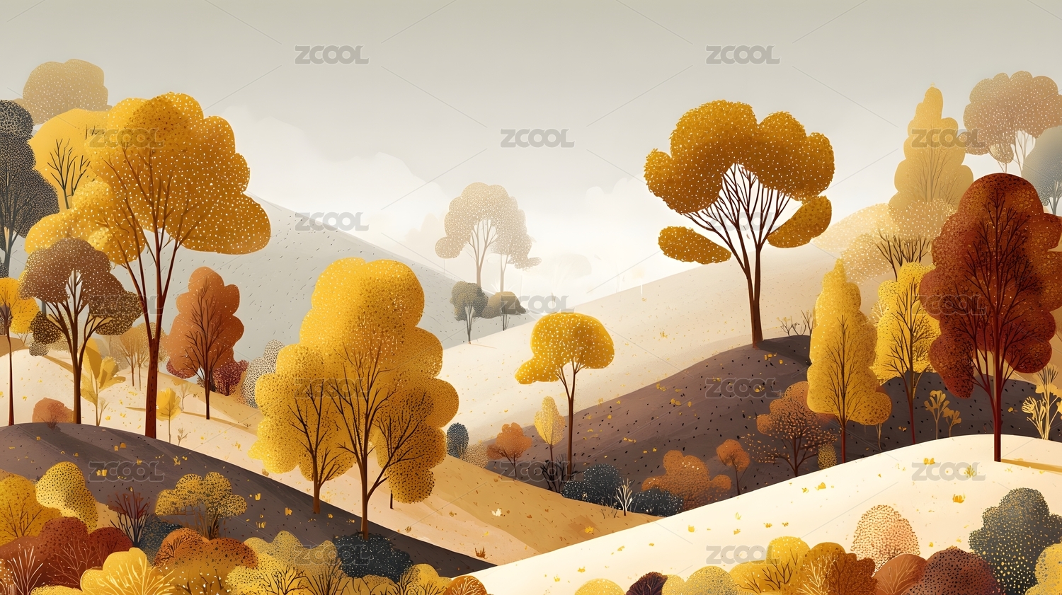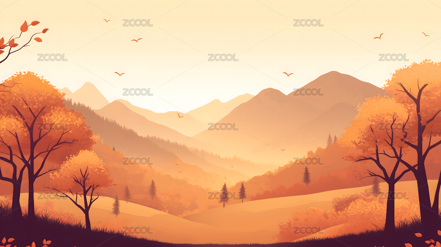 黄色,背景,天空,树木,地平线,自然,风景,色彩,远山,秋天