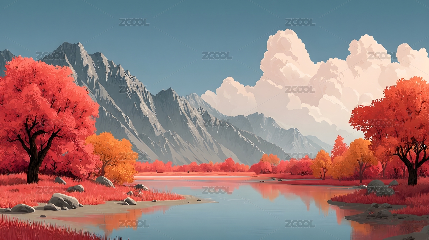 秋天秋季立秋秋分自然户外风景卡通漫画插画