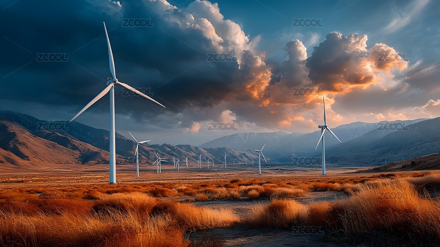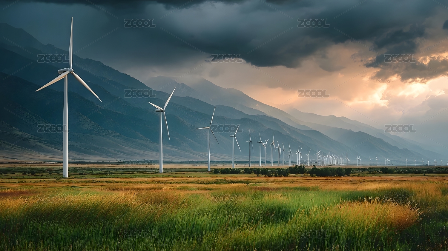 山脉,风景,天空,风车,田野,能源,发展,云层,远山,环境
