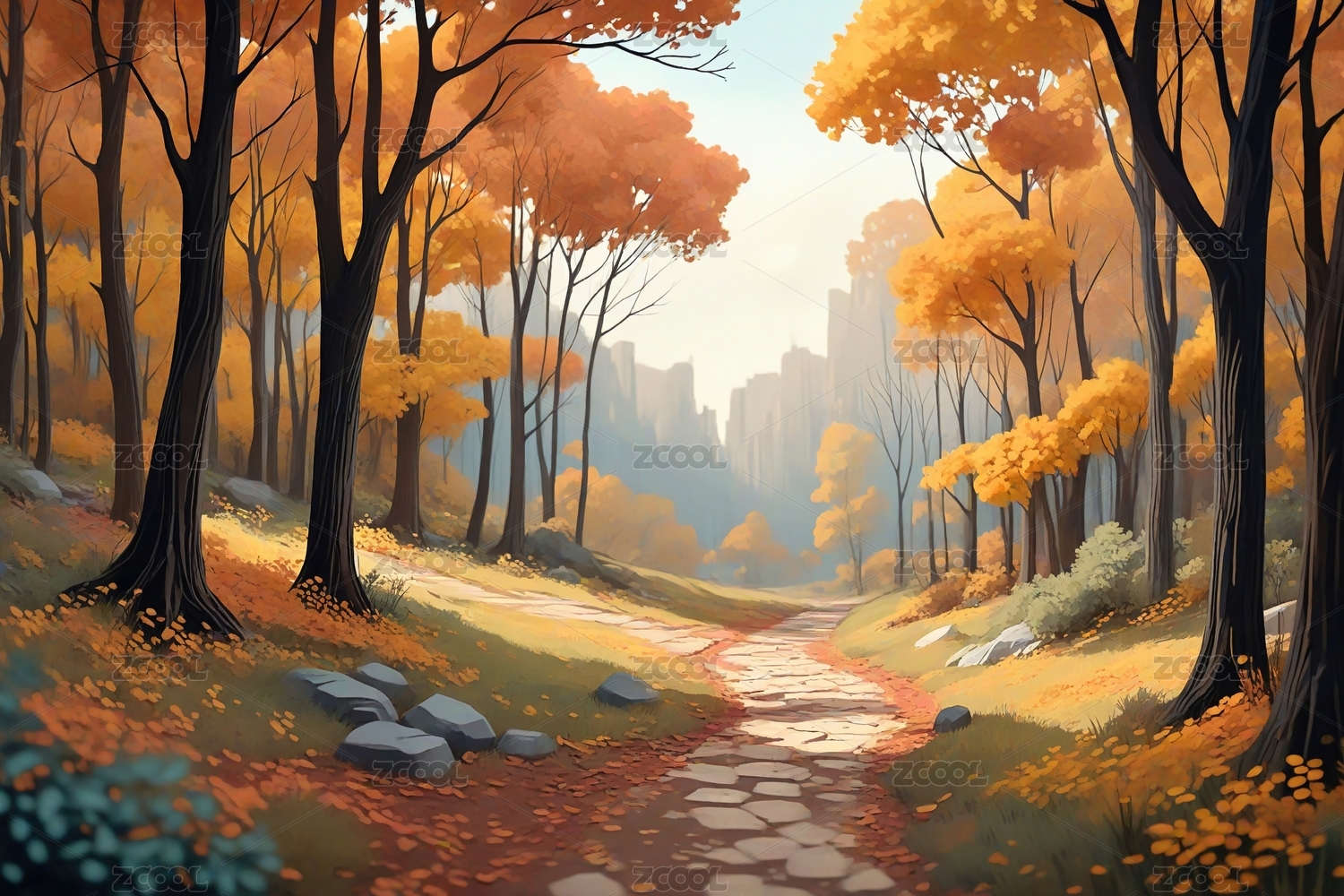 秋天,树木,远山,自然,宁静,灌木,光影,色彩,景色,蓝色