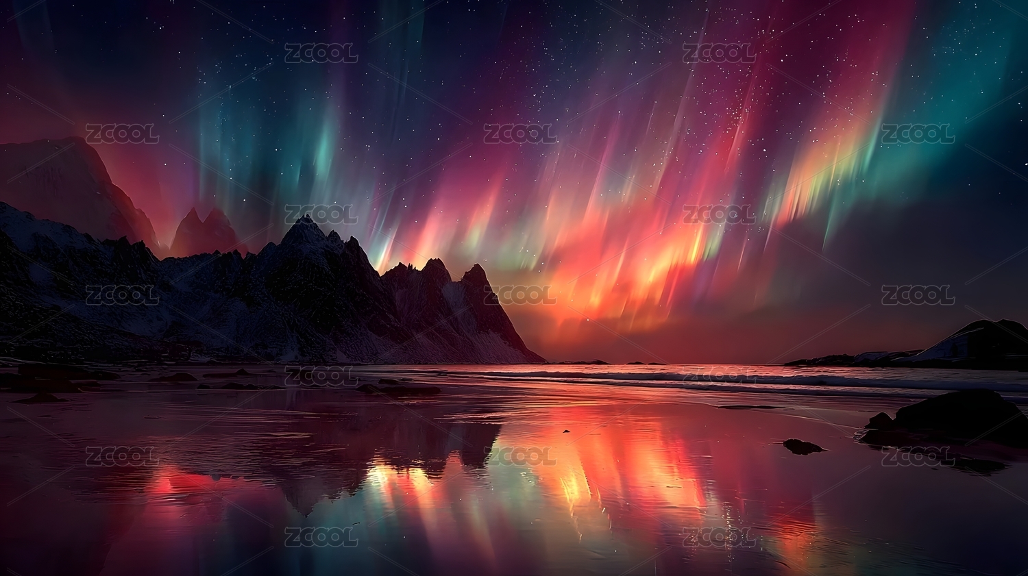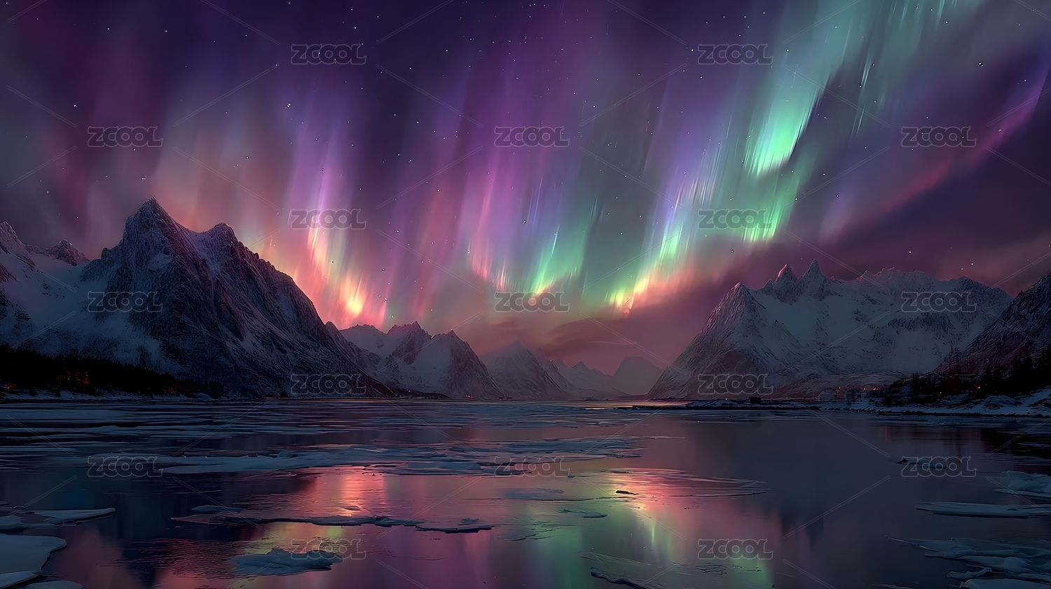 极光,夜空,星星,雪地,山脉,天空,风景,自然,湖泊,雪山