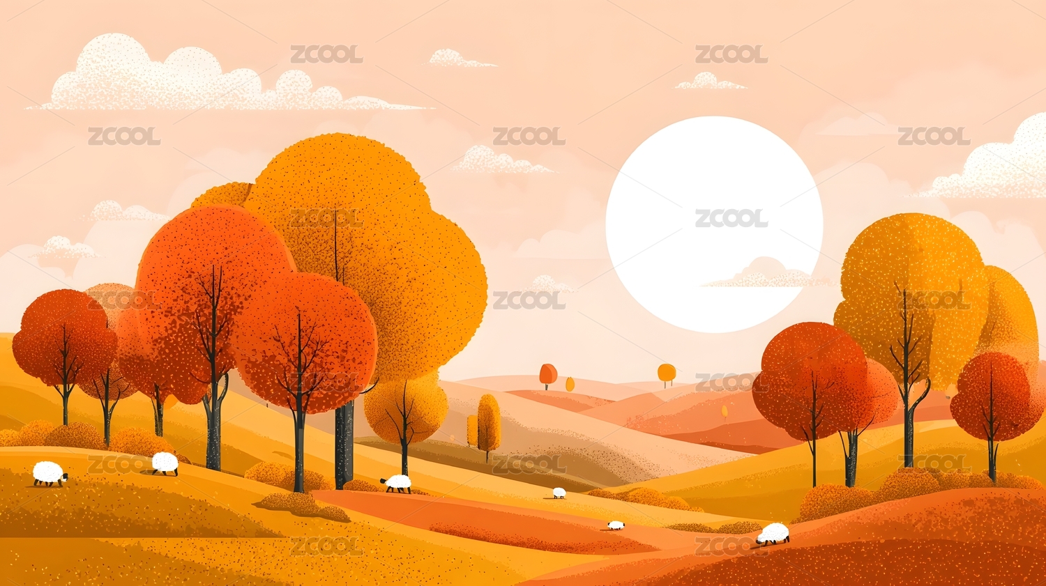 立秋节气户外旅行自然风景处暑卡通唯美插画