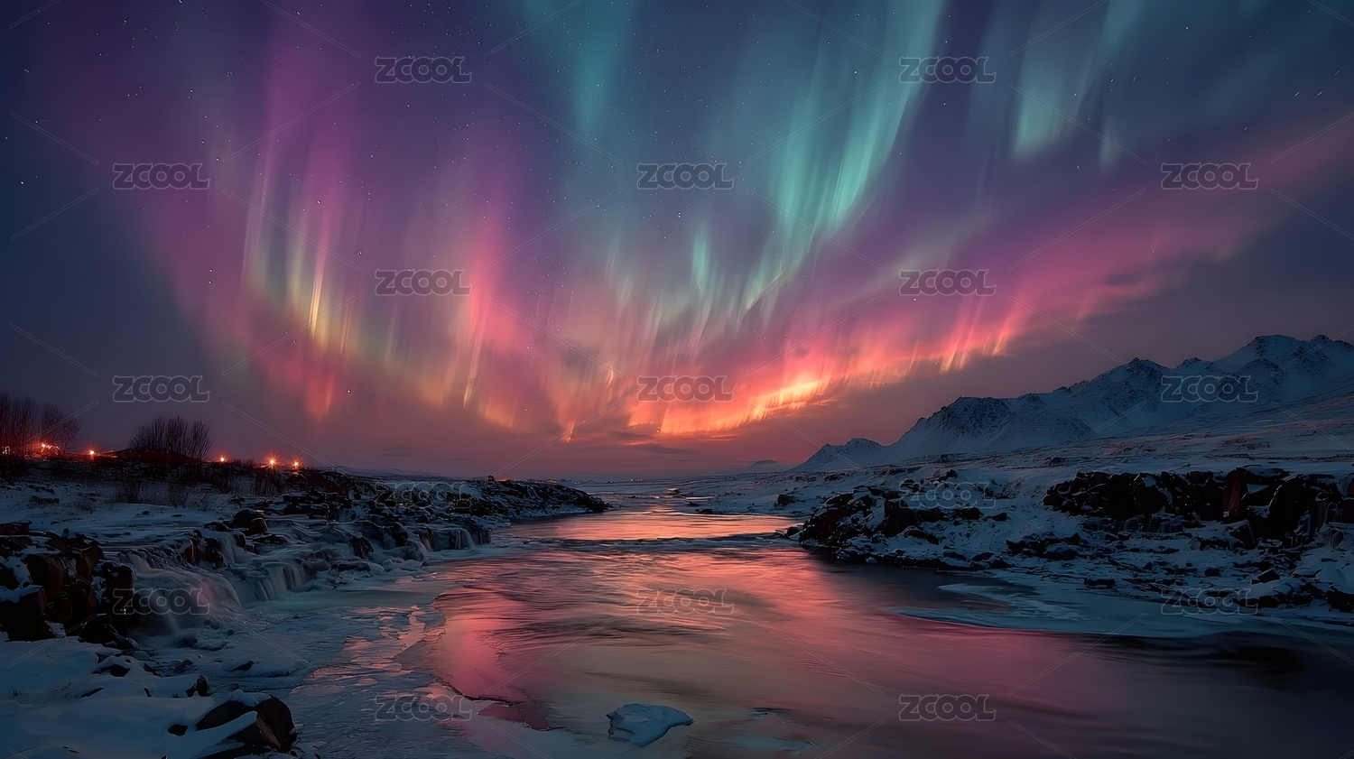 极光,星空,自然,风景,冰面,地平线,冰川,环境,山脉,雾气