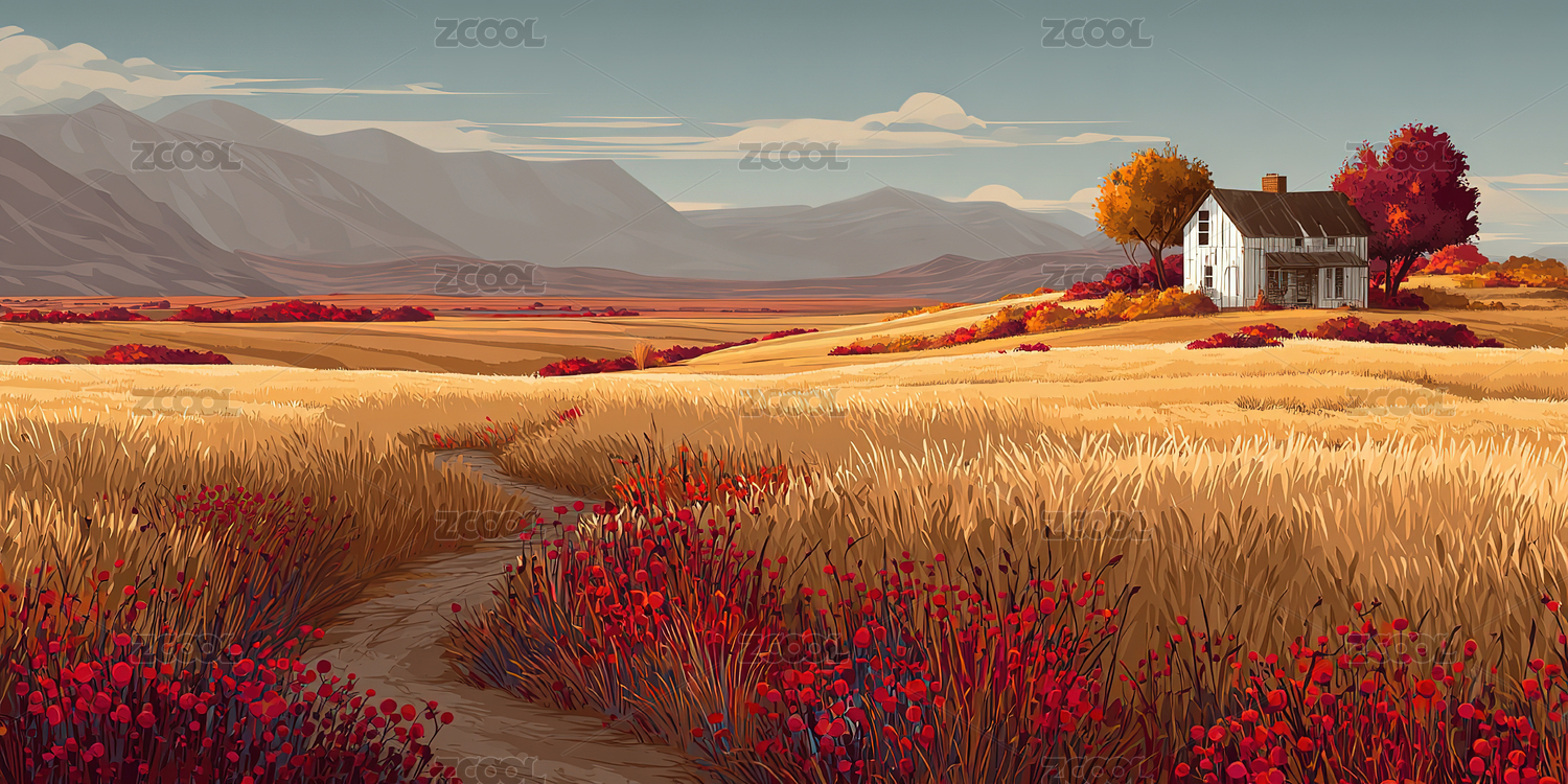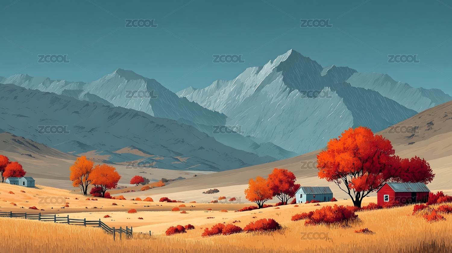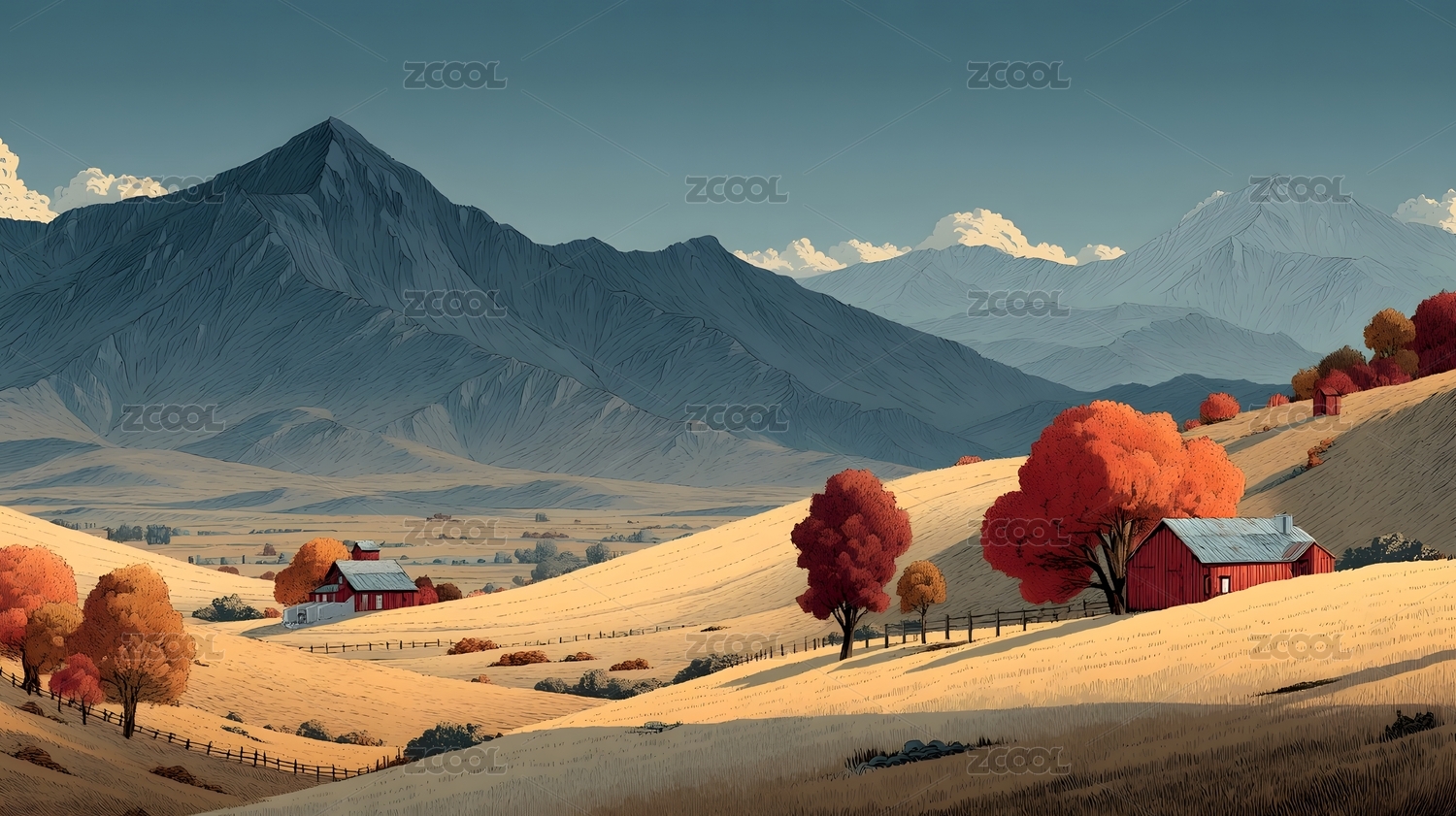 秋天,树木,山脉,远山,自然,宁静,风景,地平线,田野,蓝色
