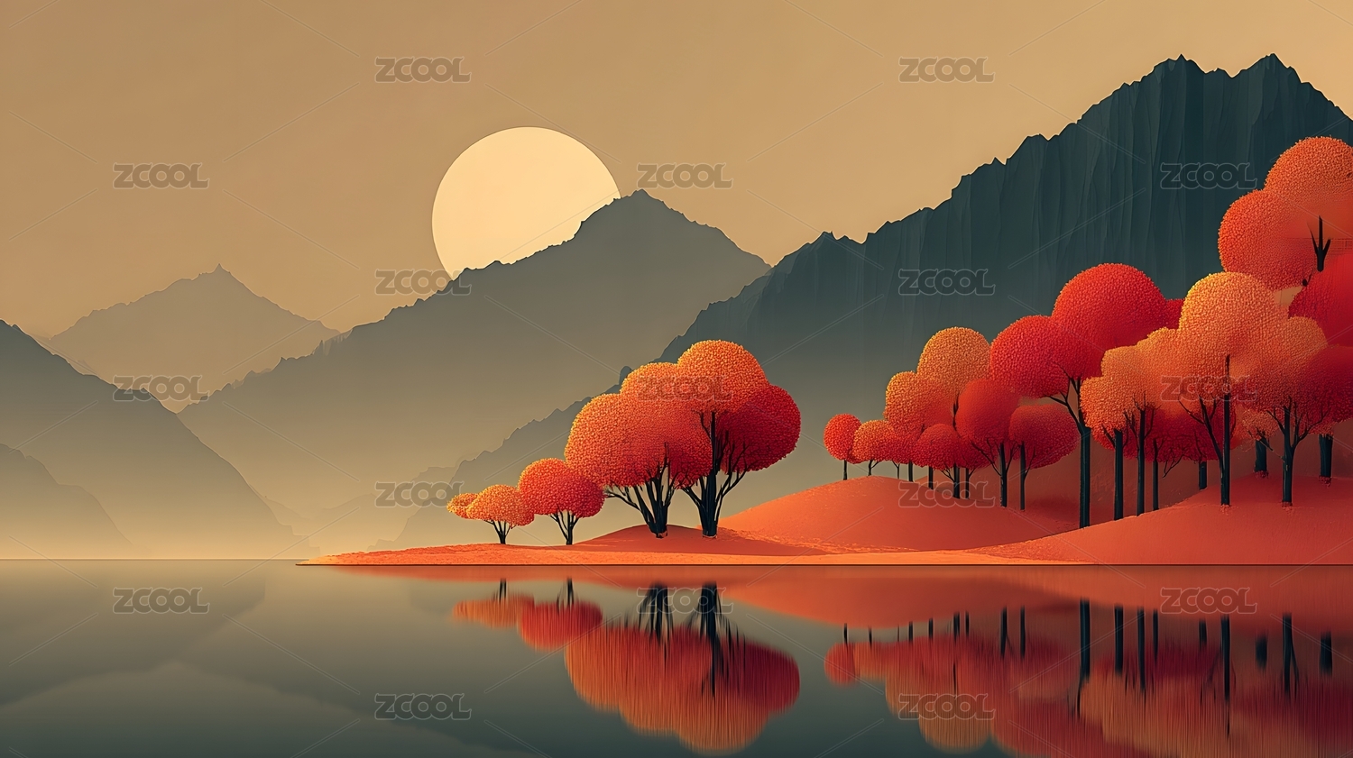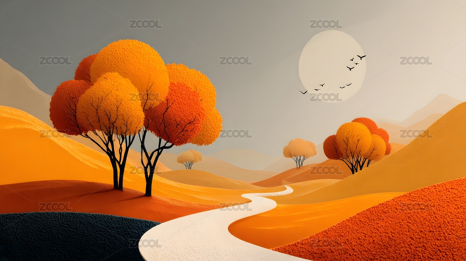 树木,景观,天空,风景,自然,远山,橙色,秋天,树冠,地平线