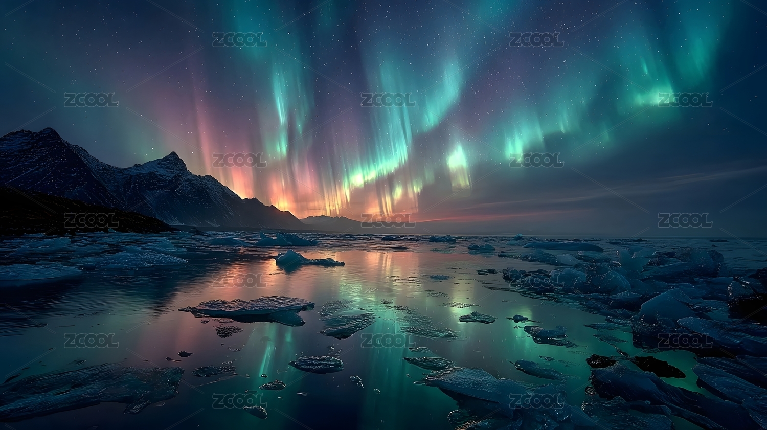 极光映照冰川夜空