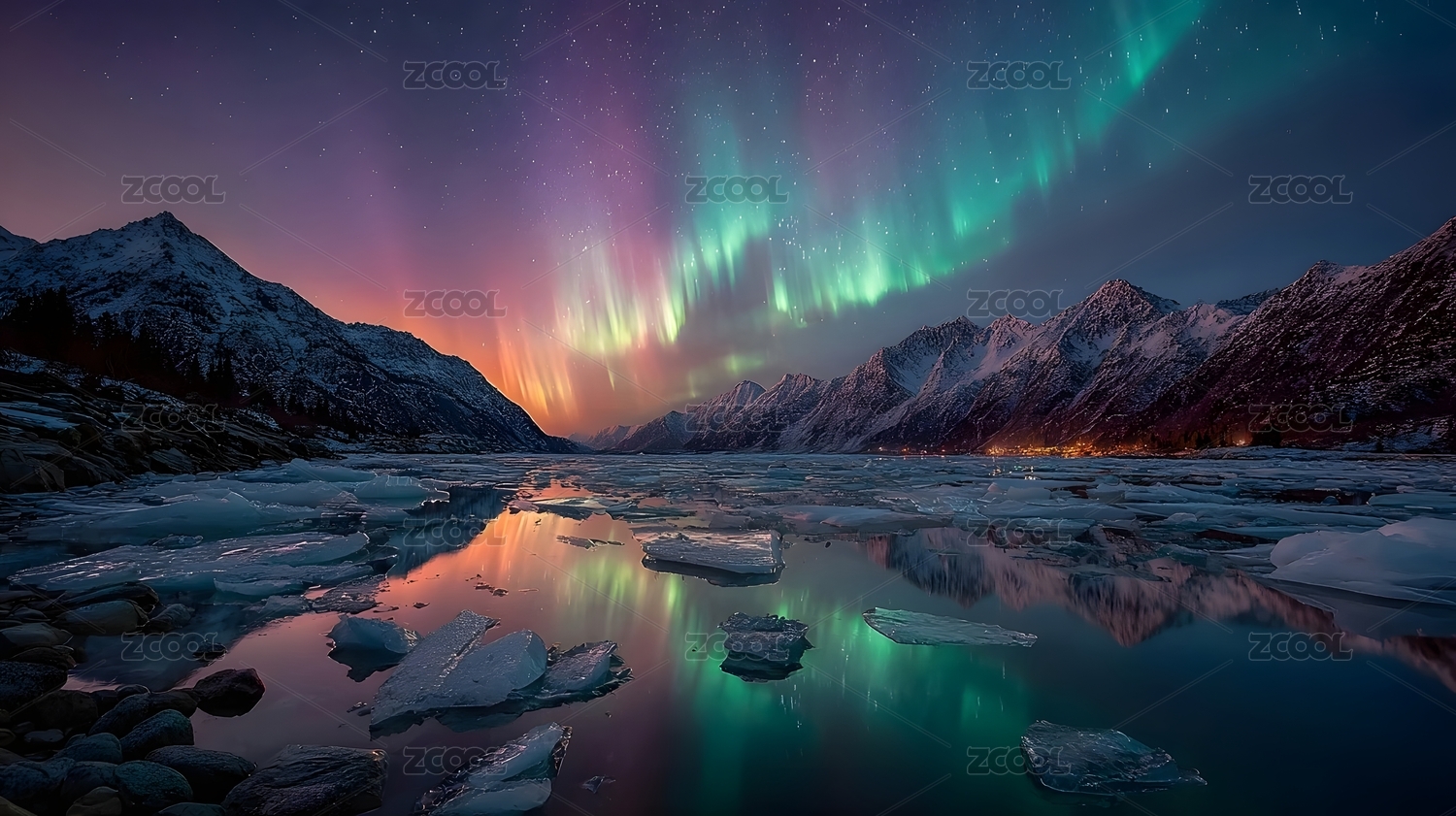 极光映雪山冰湖