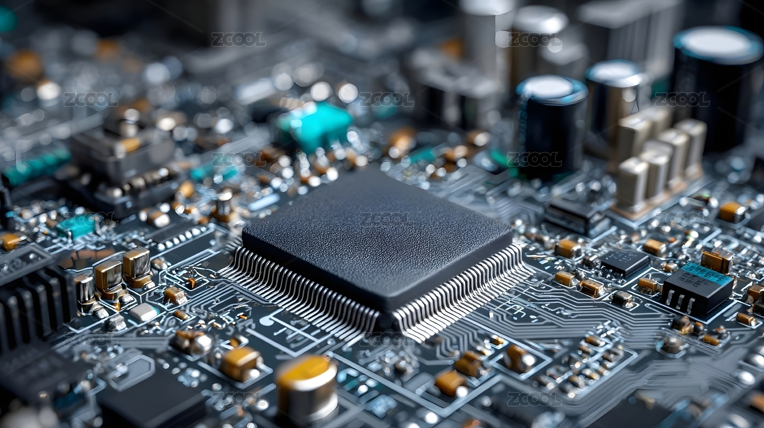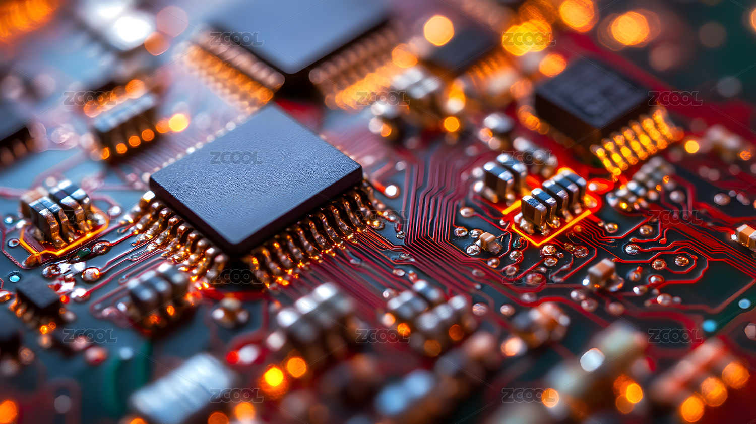电子芯片与电路板特写