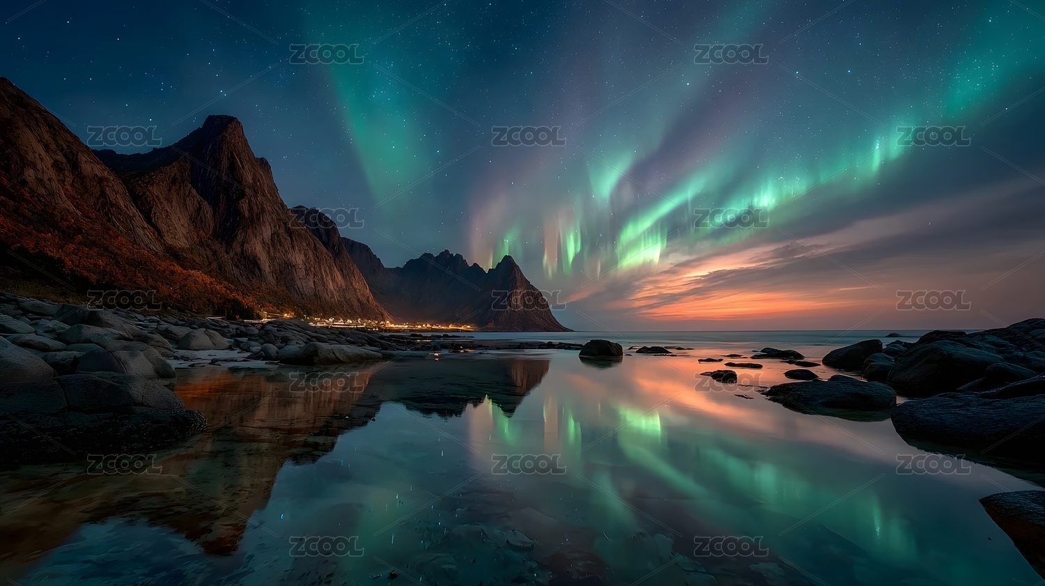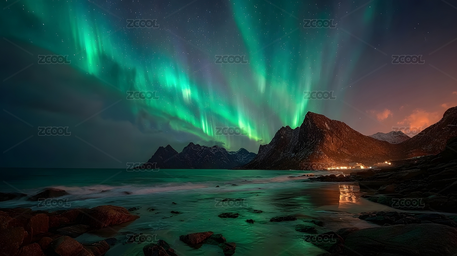 极光,星空,自然,灯光,风景,夜晚,云层,房屋,天空,山脉