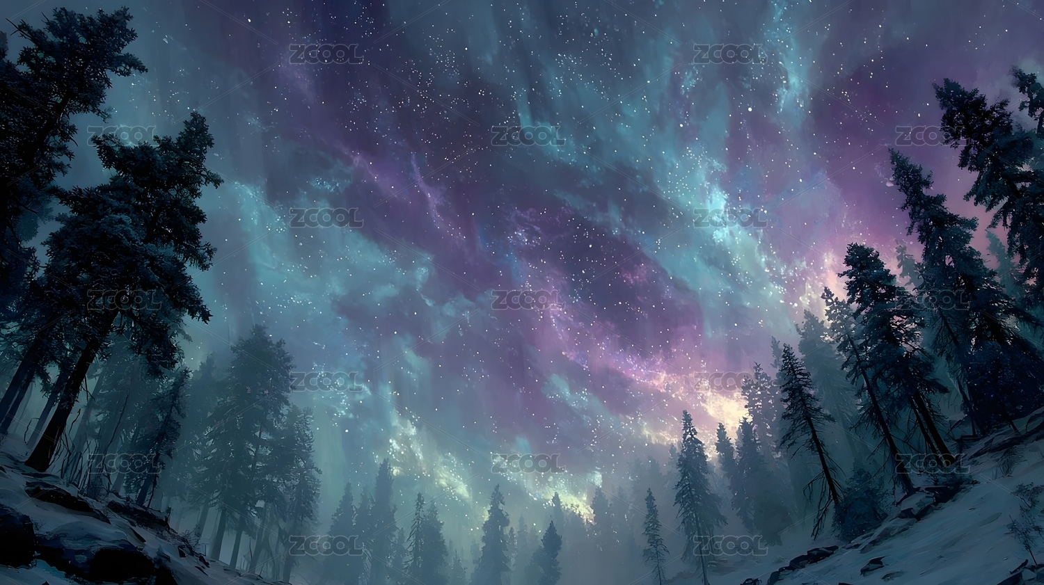 树木,宁静,雾气,远光,夜色,风景,自然,森林,星空,夜空