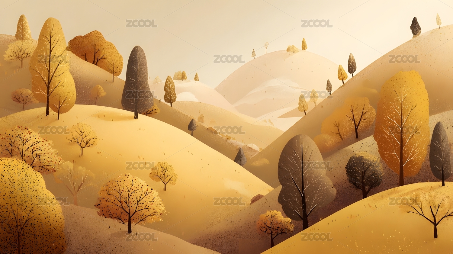 秋日山丘与金黄树林