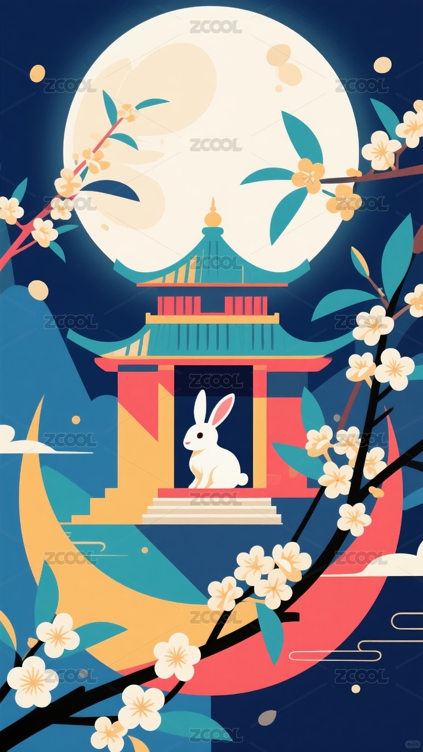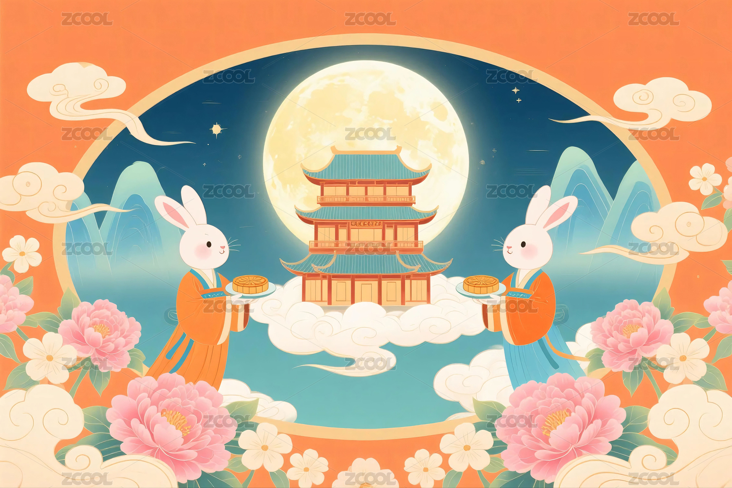 中秋,佳节,卡通风格,中国风,满月,传统,节日,团圆,喜庆,神话