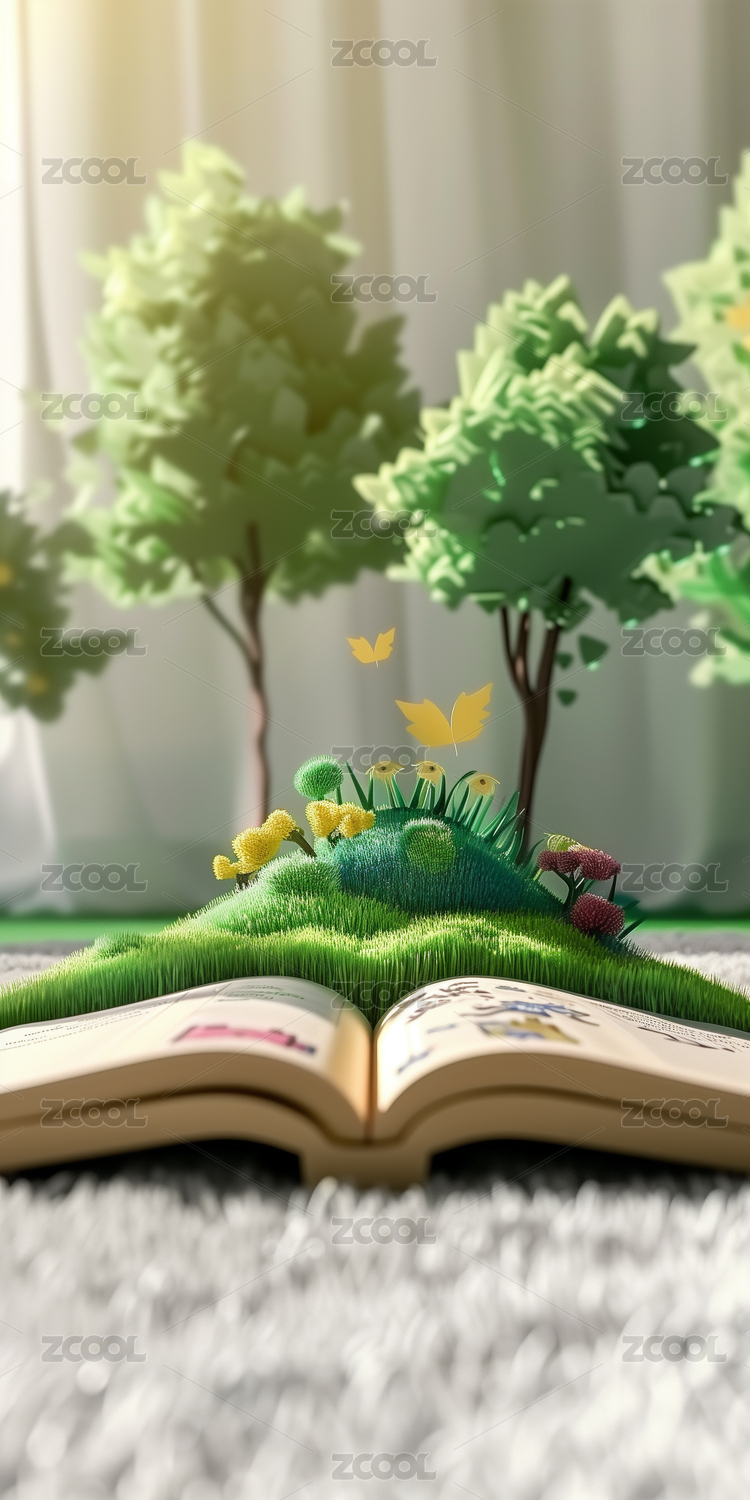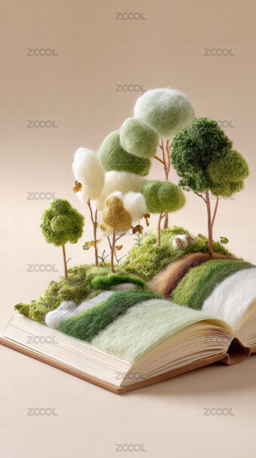 光影,梦幻,自然,树木,书本,苔藓,溪流,蘑菇,细节,和谐