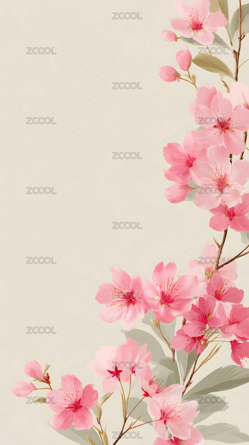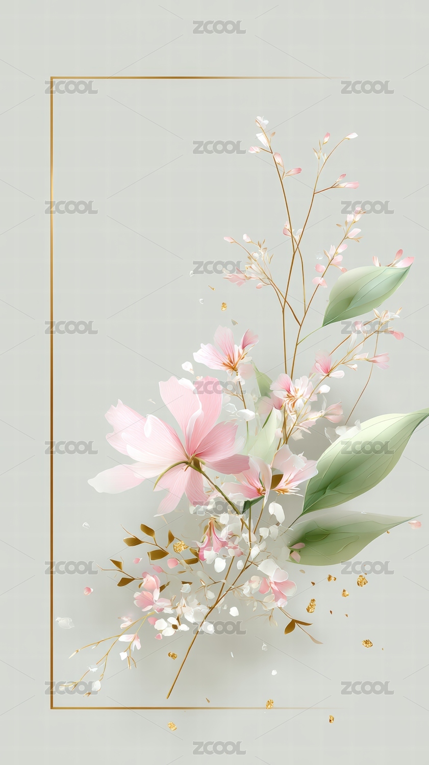 花卉,清新,花瓣,枝条,粉色,嫩绿,金箔,唯美