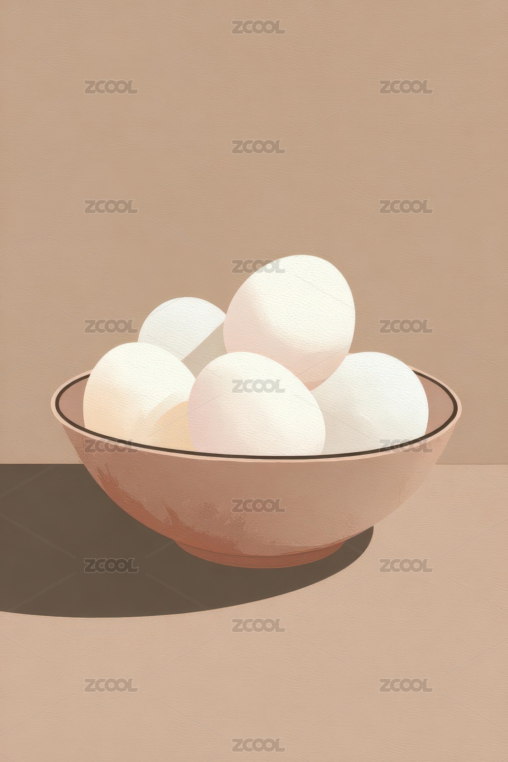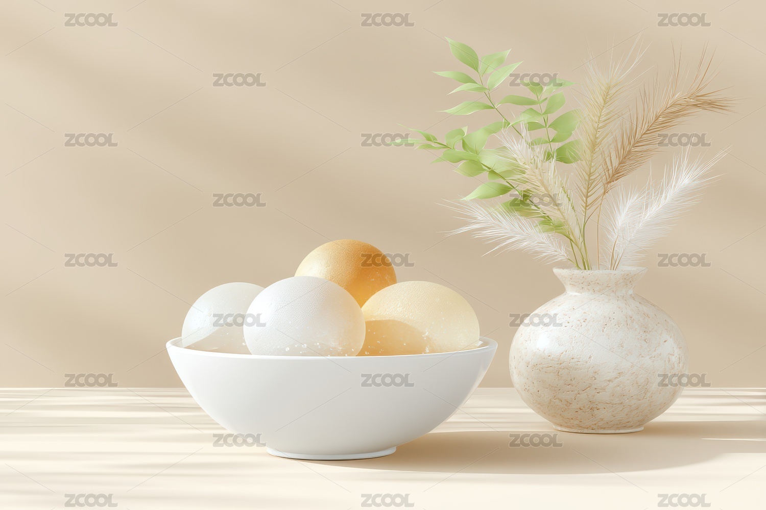 简约陶瓷碗中的鸡蛋与麦穗装饰