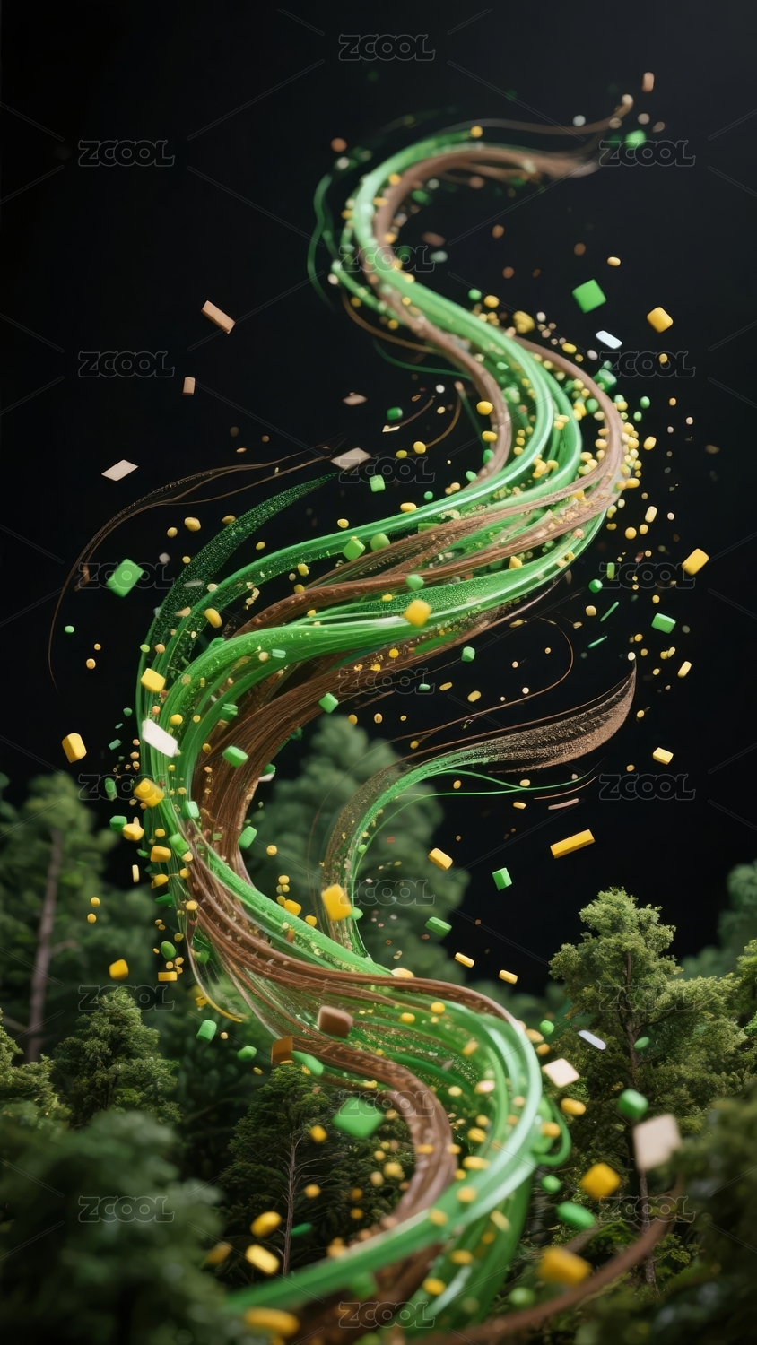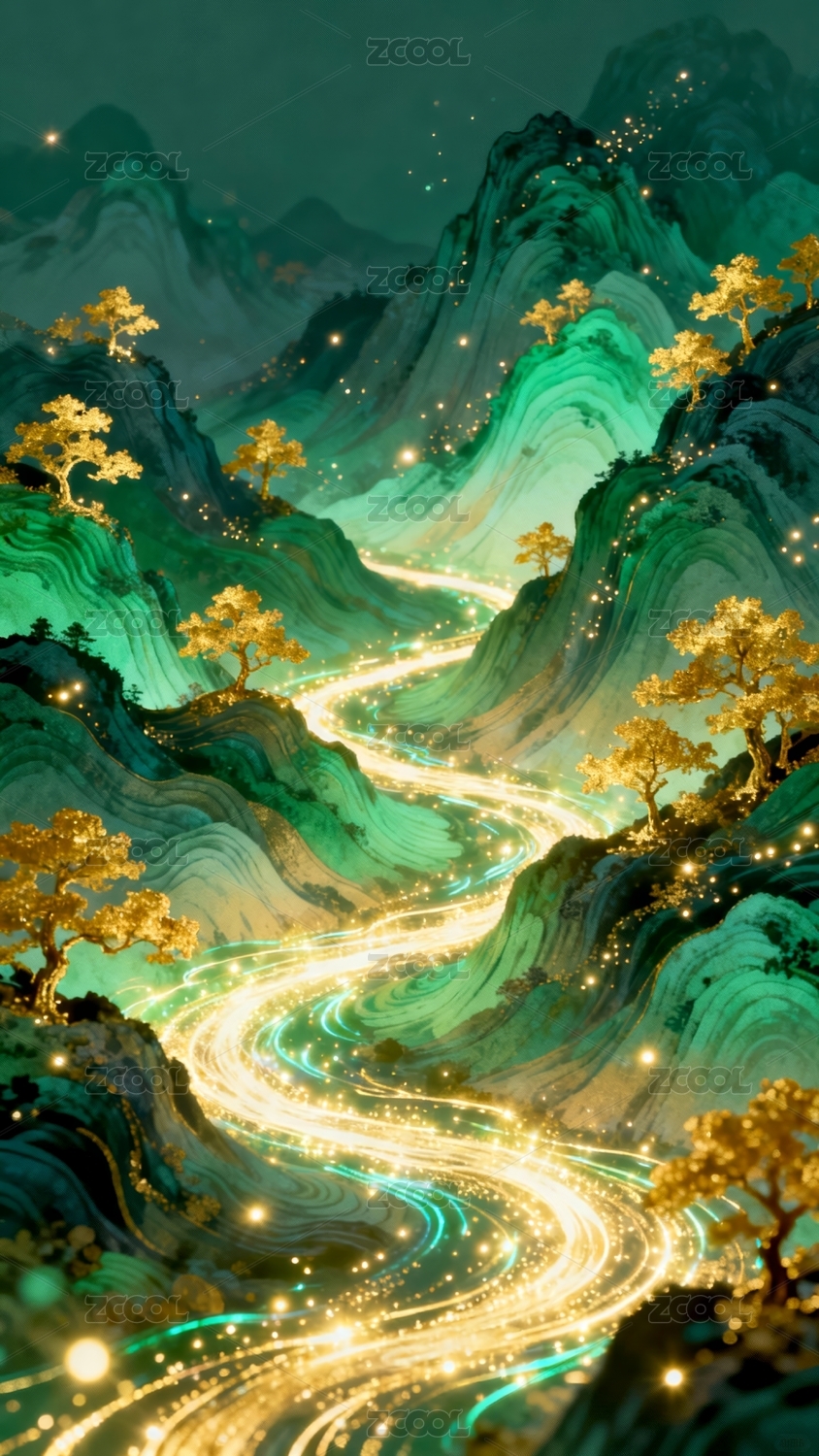 建筑,云雾,流光,树木,小桥,仙境,金带,飞瀑
